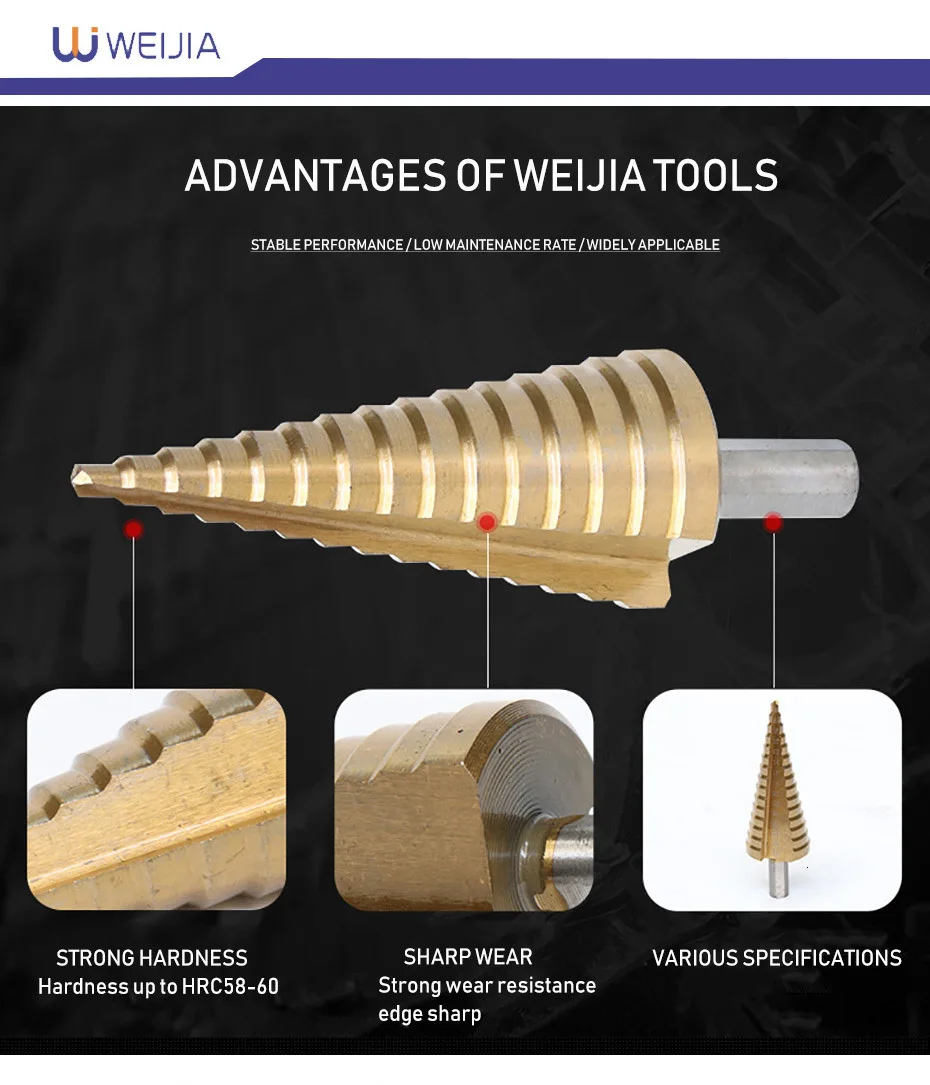 Эти ступенчатые сверла идеально подходят для различных материалов от металла, пластика, стекловолокна до дерева.