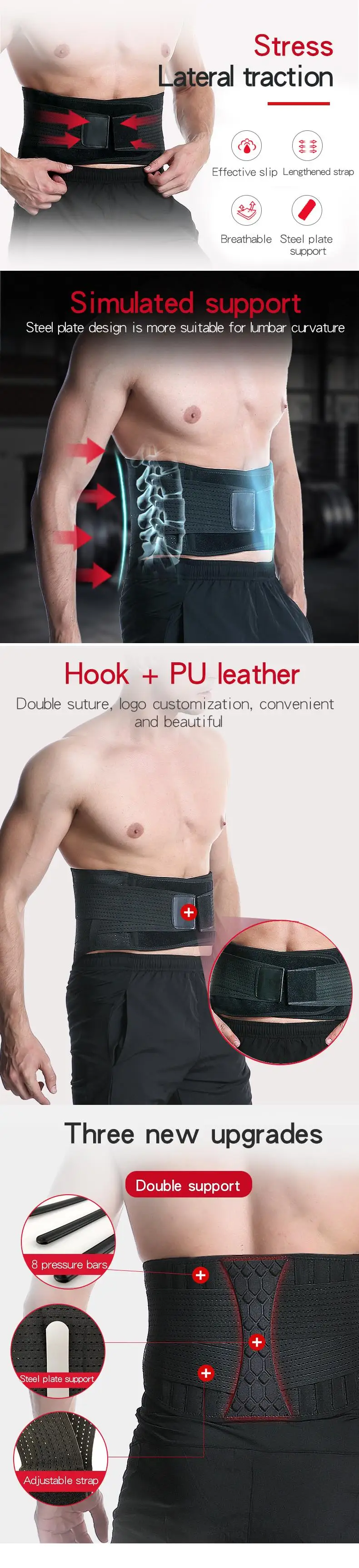 1. Качественная поддержка талии-поверхность силы, поддерживаемая 8 напорными полосками, может быть увеличена, давая сильную поддержку талии и спины. 2. Спинномозговая пластина-Увеличьте пластину на позвоночнике пояса, установите Радианы позвоночника и Увеличьте поддержку. Улучшить вредные привычки сидения. 3. Дышащая и прочная ткань делает бандаж гибким и комфортным, чтобы обеспечить естественное движение, предоставляя дополнительную поддержку спине, чтобы улучшить осанку, чтобы помочь лечение проблем с спинкой. 4. Легкий и дышащий-разработан с отверстием сетки на спине для повышения воздухопроницаемости. Носить под одеждой удобно.