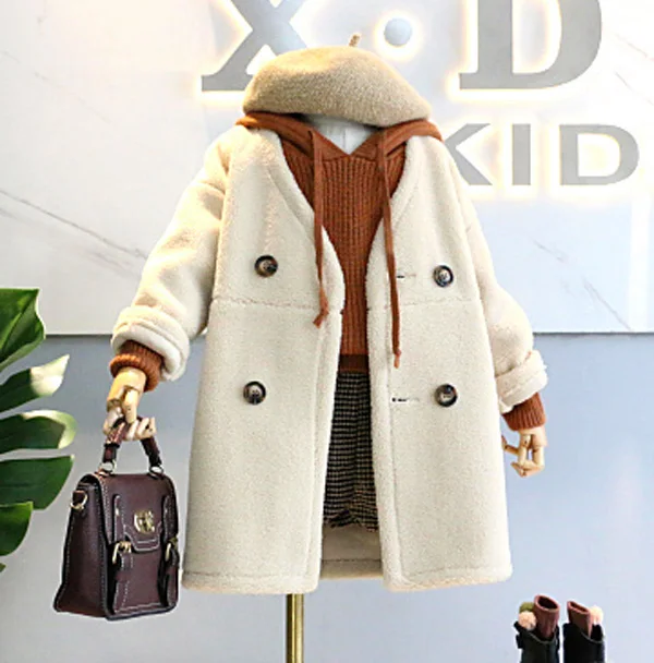 Длинное пальто для девочек; Детский плащ из овечьей шерсти; От 3 до 10 лет
