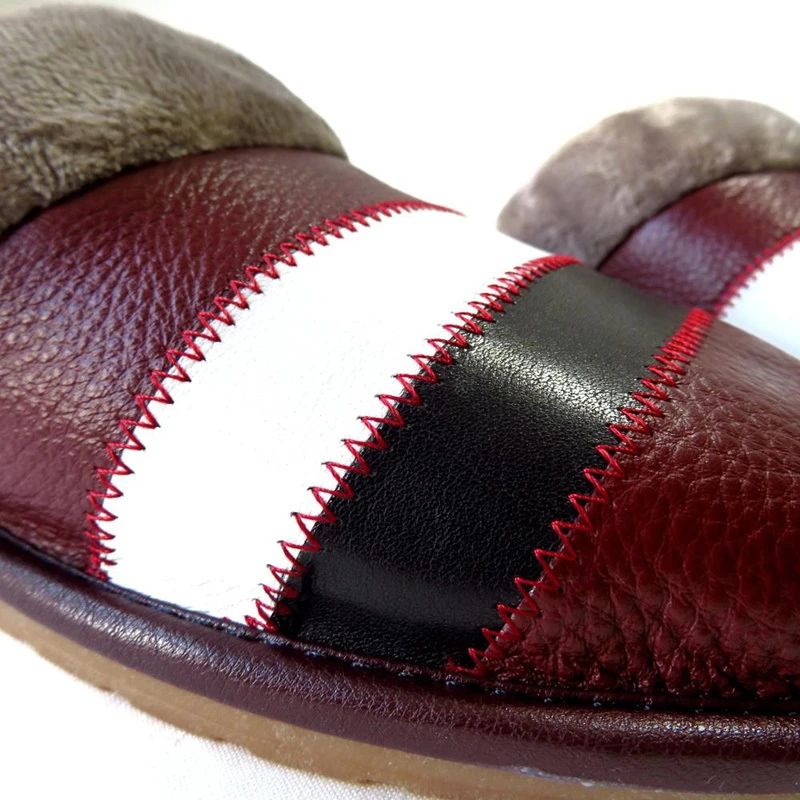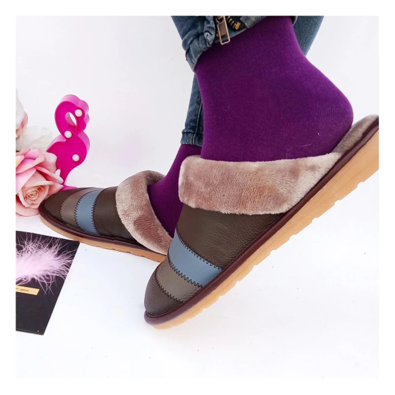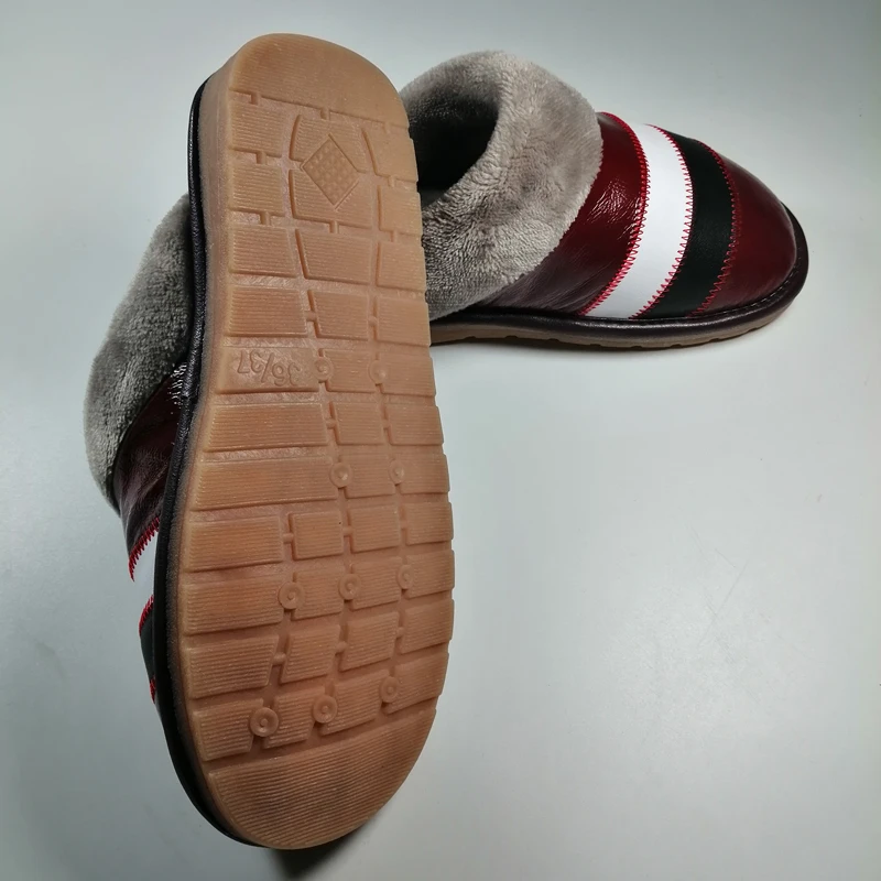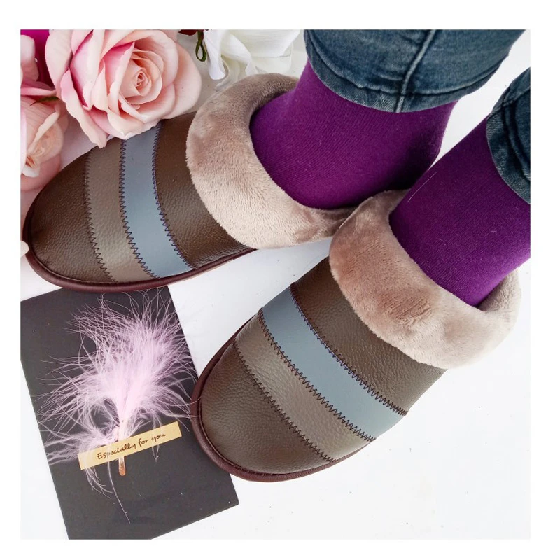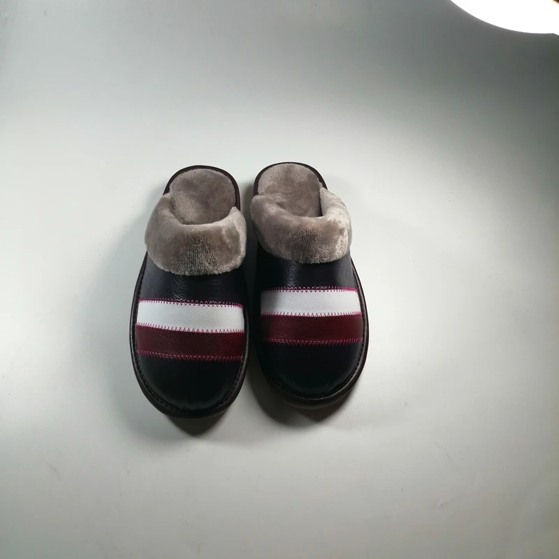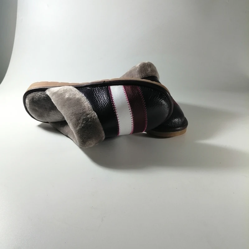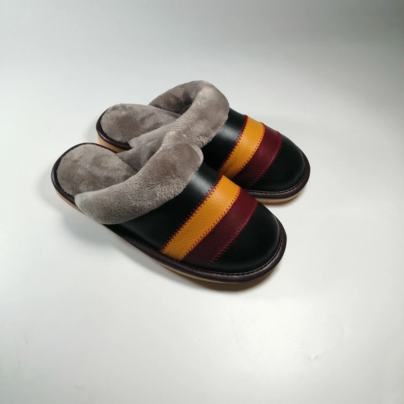 Зимние домашние тапочки на подошве, Для женщин натуральная коровья кожа мода женская обувь теплая обувь E178 Повседневное Прошитые женские черное платье с полосками комплект однотонной одежды красного цвета без шнуровки