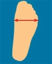 Полнота измеряется по самой широкой части носка с помощью сантиметра, как показано на рисунке.