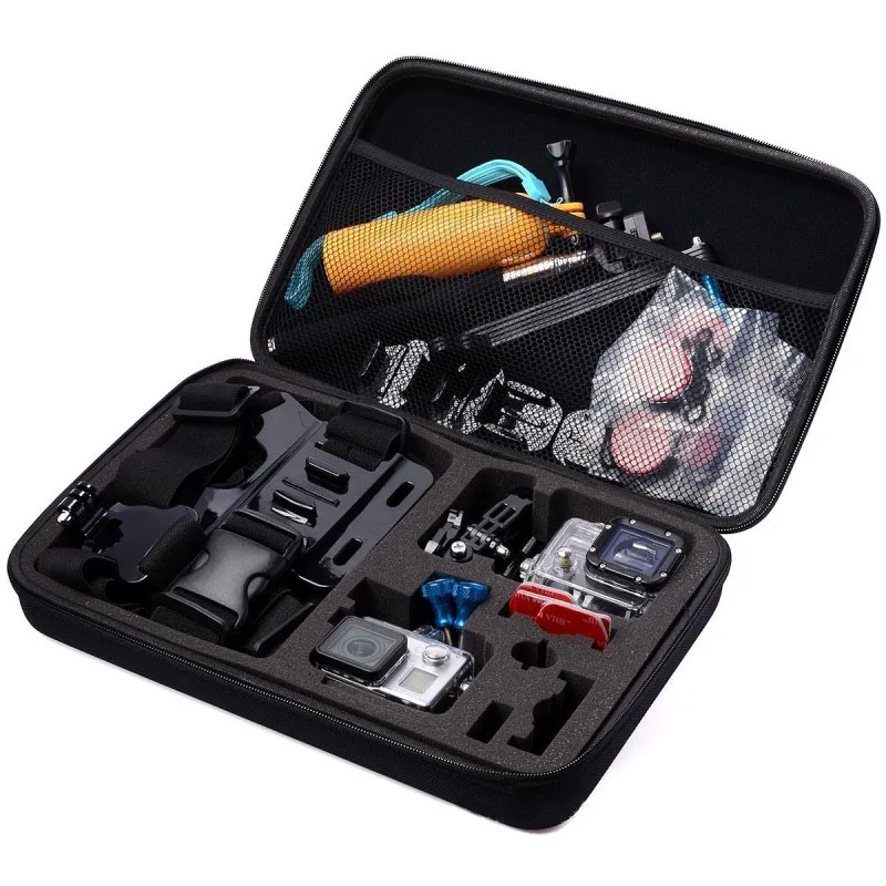 Камера и аксессуары в комплект не входят Внешние размеры: прибл (Ш x В x Г) 32,5x21,7x6,5 см Посылка включает в себя: 1x противоударный чехол для gopro (только сумка. Камера и аксессуары в комплект не входят)