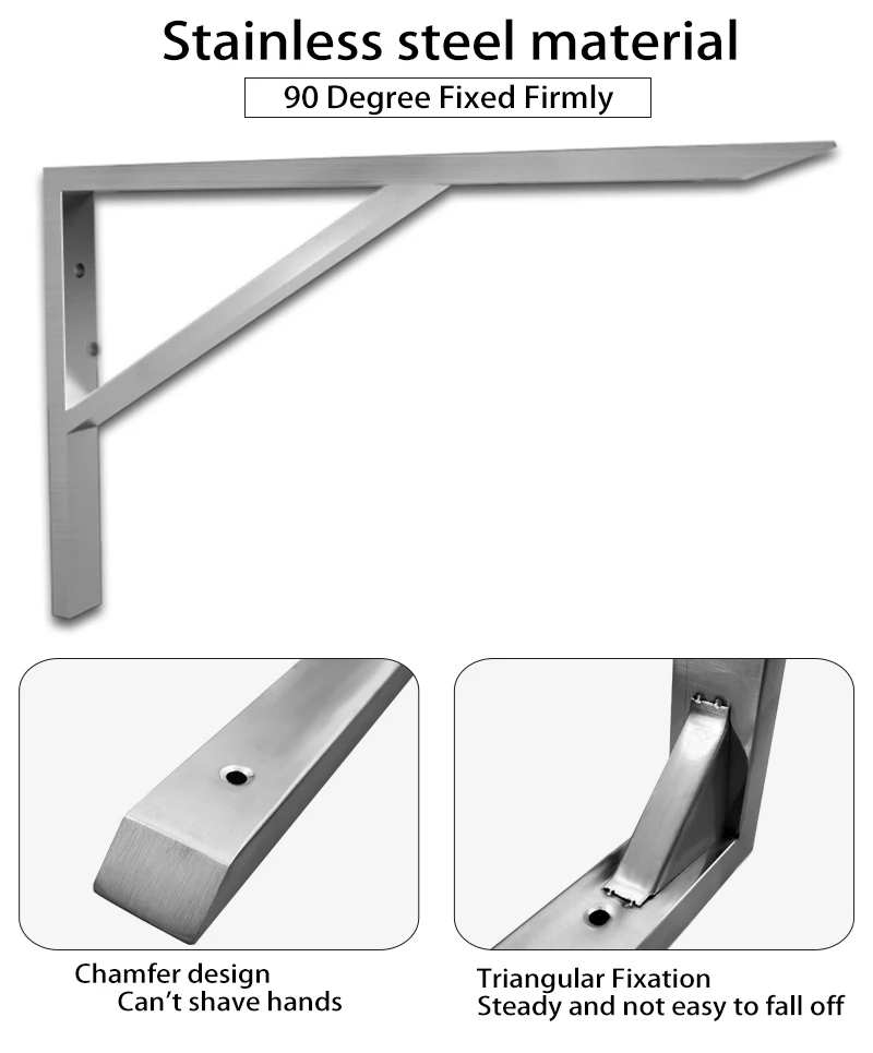 Особенности: Утолщенный дизайн, изготовленный из высококачественных материалов, делает его твердым и прочным. Прочная треугольная конструкция для надежной стабильной поддержки. Широкое использование, может быть установлен на стене и сэкономить больше места для вас на вашей кухне, магазине, магазинах, мастерских, лодках, дома на колесах, на заднем дворе, прицепе, комнате, кухне, балконе, ванная комната и т. Д. Легко установить, вы можете закончить его в течение нескольких минут. Достаточно использовать в качестве книжной полки, кухонной полки, выставочного стенда, садовой полки, внешних настенных кронштейнов и т. д. Технические характеристики: Материалы: 201 нержавеющая сталь Размер: 10 дюймов/12 дюймов/14 дюймов/16 дюймов/18 дюймов/20 дюймов Нагрузки Вес: 100 кг