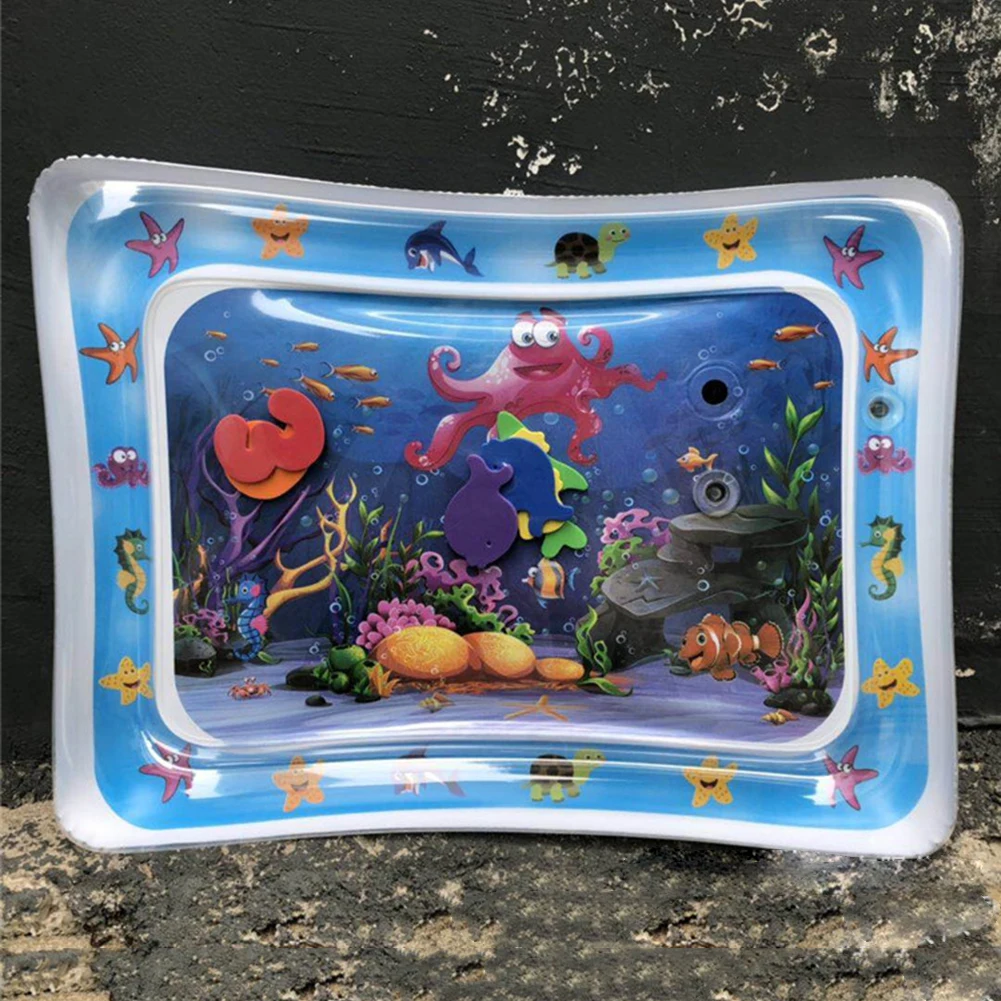 Надувной коврик для воды с мультипликационным принтом для малышей, стимулирующий рост живота, игровой коврик