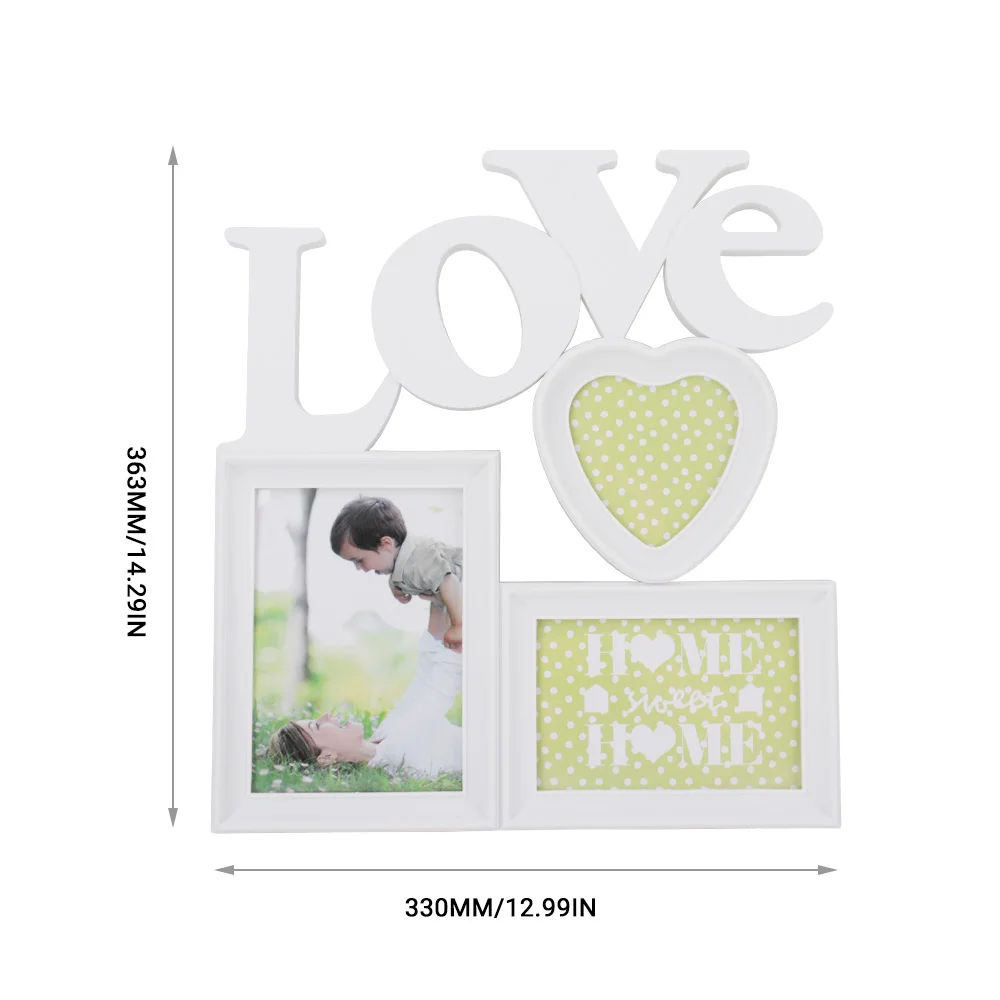 С гордостью показывайте фотографии ваших близких в этой висящей стене фоторамке. Особенности: 3 мульти-размера рамки для фотографий, 4 дюйма, 6 дюймов, 7 дюймов. Идеально подходит для подарков во многих случаях. Запечатлейте все ваши прекрасные воспоминания. Цвет: белый Размер: прибл. 36x33 см/14,3x13,0 дюйма