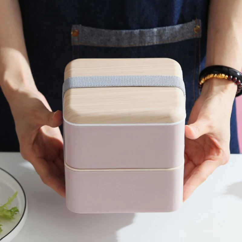 Двухслойный Ланч-бокс квадратная пластиковая коробка для бенто портативный герметичный ланч-контейнер