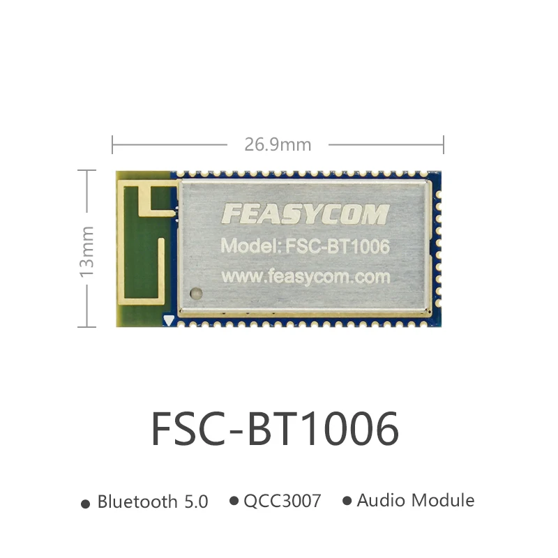 FSC-BT1006A-это высокопроизводительный аудио модуль Bluetooth и имеет чипсет QCC3007, это двухрежимный модуль Bluetooth 5,0 и поддерживает настройки параметров через UART. FSC-BT1006A поддерживает профили A2DP,AVRCP,HFP,HSP,SPP,GATT,HOGP,PBAP, интегрирует антенну PCB (по умолчанию) и поддерживает установку внешней антенны (опционально). Feasycom FSC-BT1006A Bluetooth автомобильный комплект