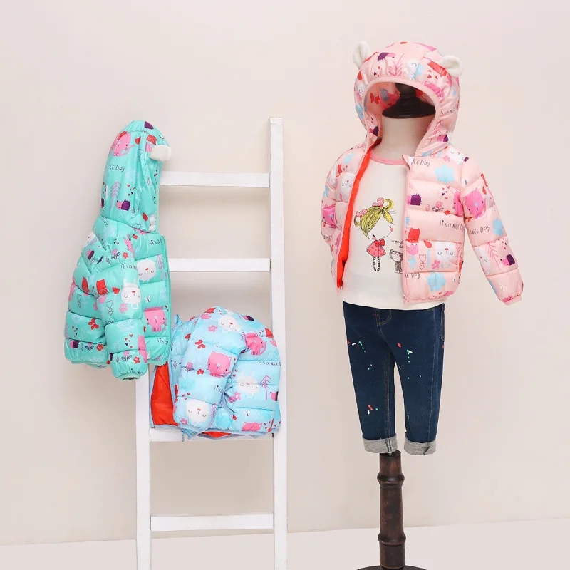 Детская куртка на утином пуху зимние брендовые теплые толстовки с принтом для девочек милое пальто утепленная верхняя одежда для детей-подростков, пальто