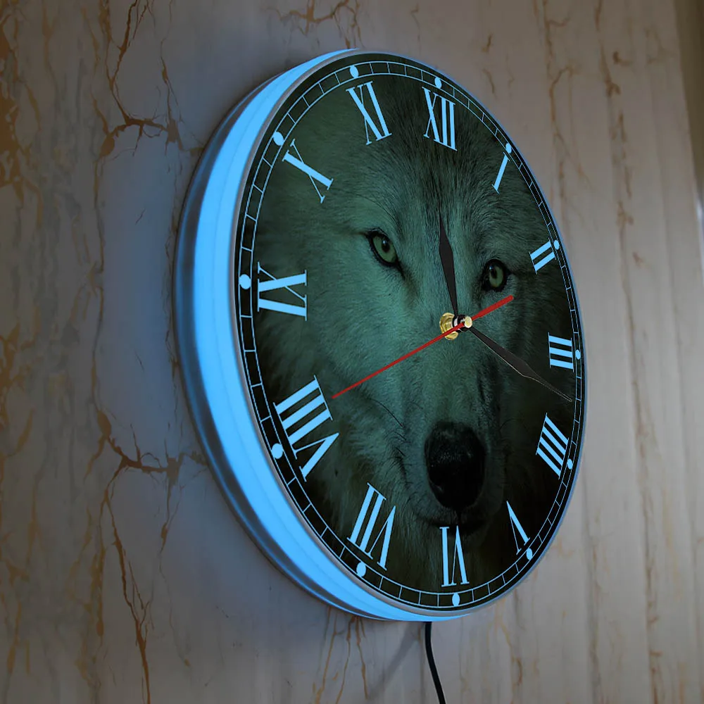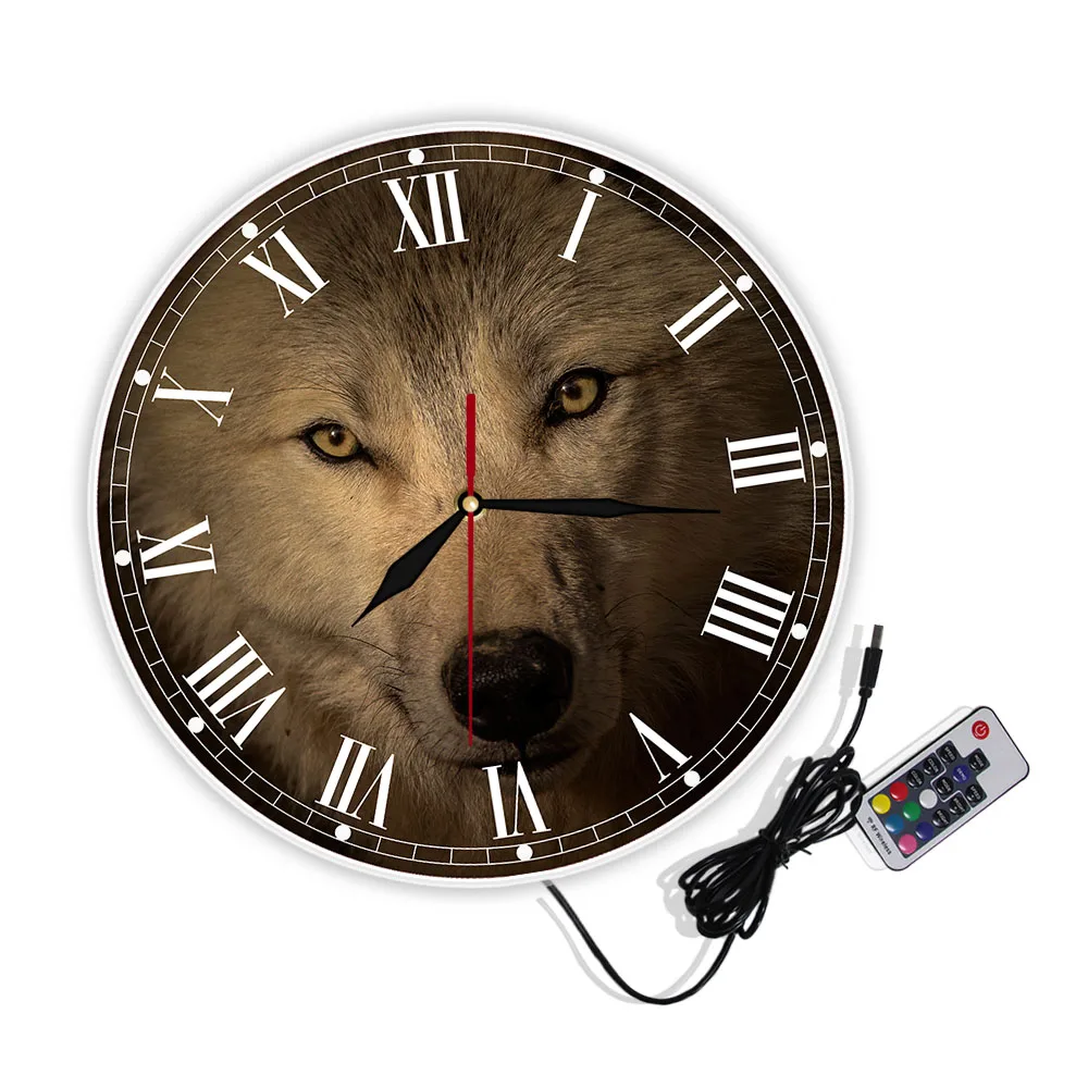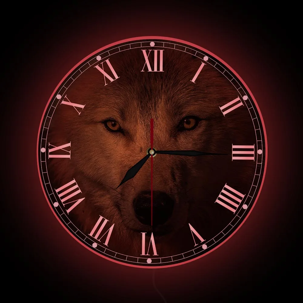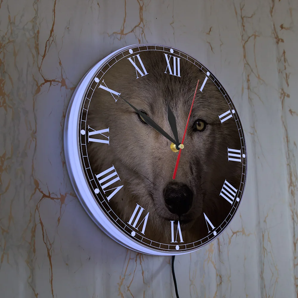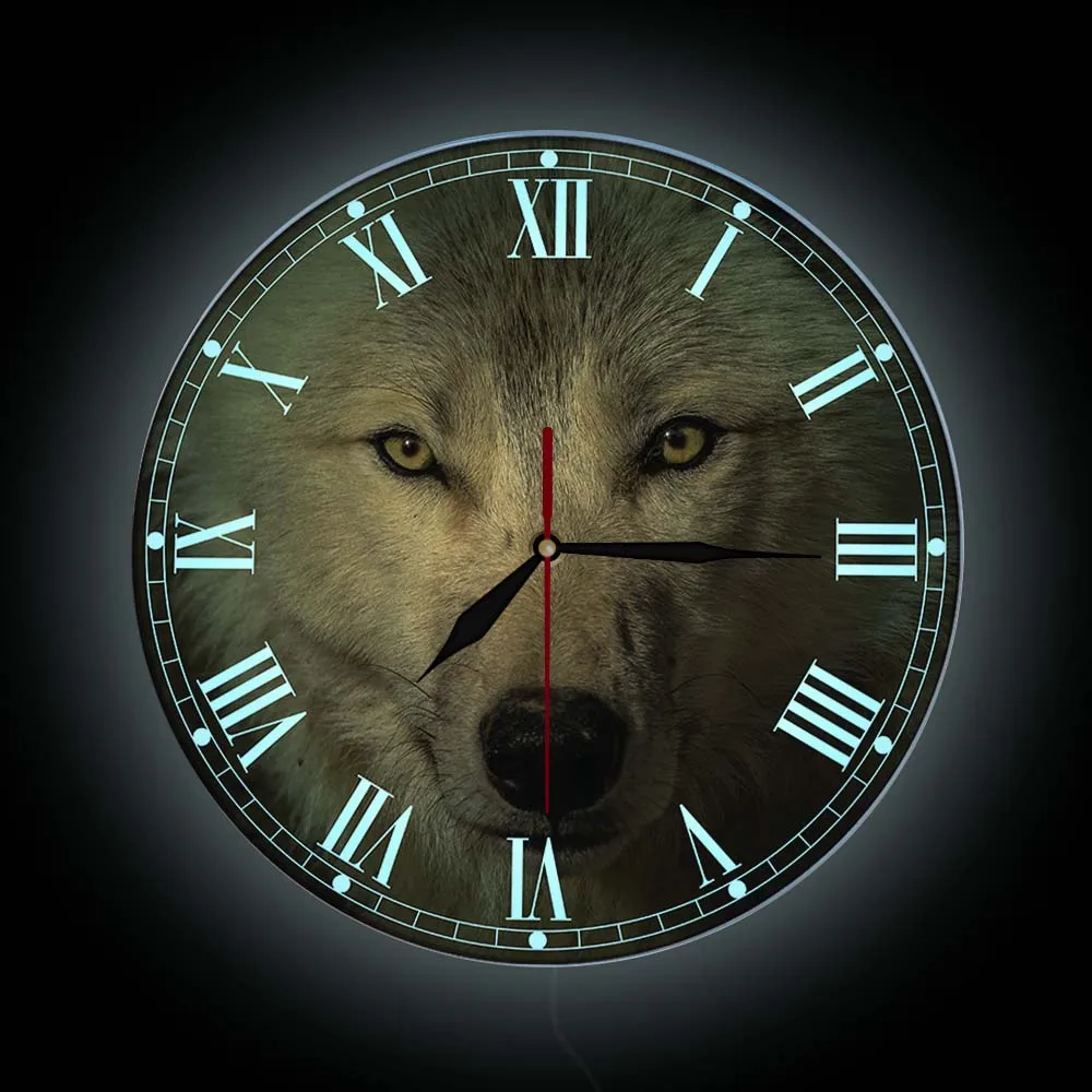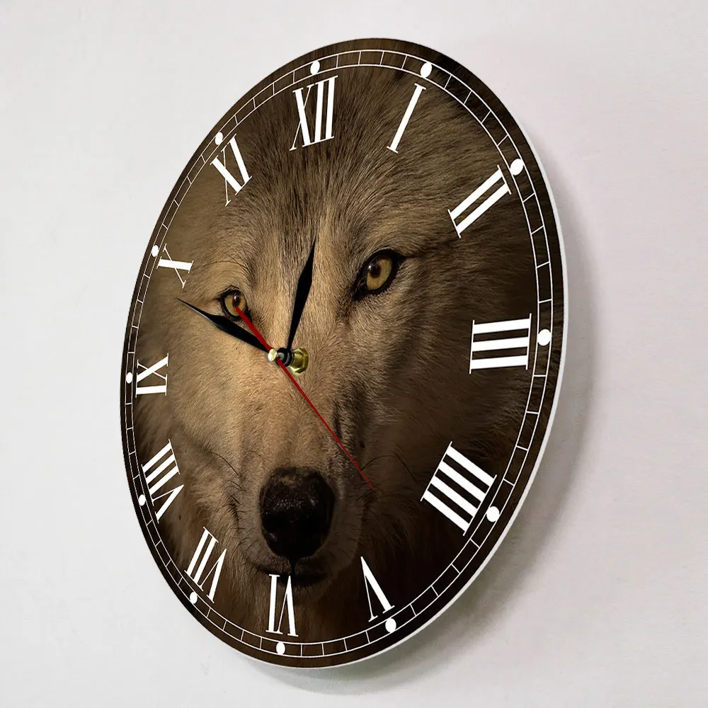 Серые настенные часы с головой волка