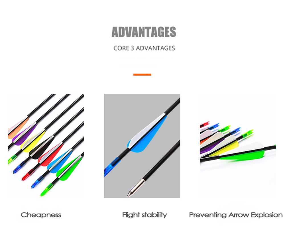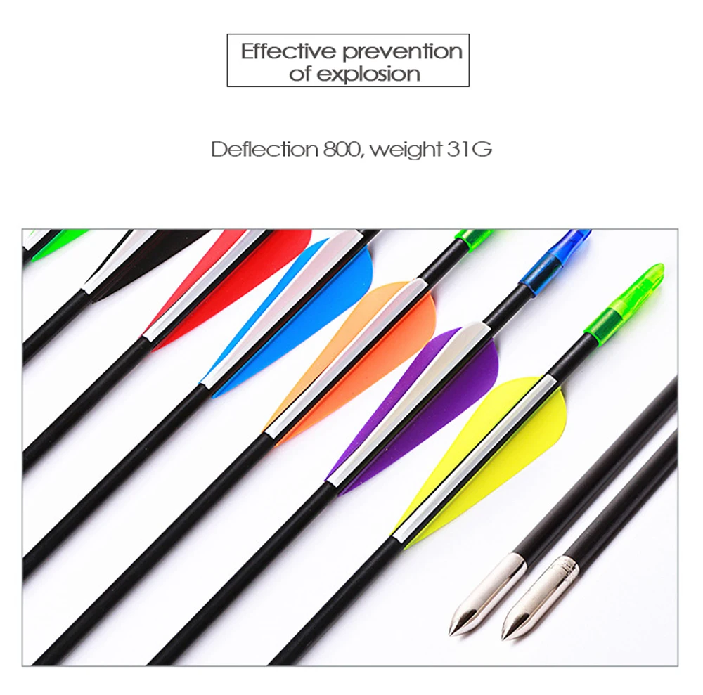 Название продукта: 6 мм стрелы из стекловолокна Материал изделия: стекловолокно Вес изделия: 31 г Длина изделия: длина стержня 76 см, общая длина 79 см Размер пера стрелы: 3 дюйма Наружный диаметр стрелы: 6 мм Отклонение: 800 Применимый лук: Обратный бант/Американский охотничий бант/прямой бант/Традиционный бант Фунты: 10-26 фунтов (для начинающих)