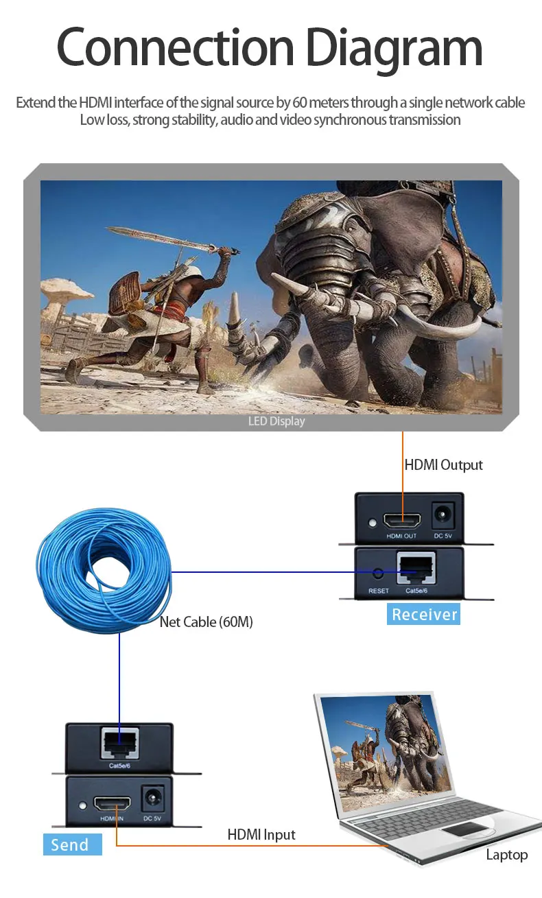 AMS-HE60S HDMI удлинитель для головок по TCP IP 60m FUll HD 1080P через UTP STP Cat5/5e/Cat6 по Rj45 HDMI передатчик и приемник