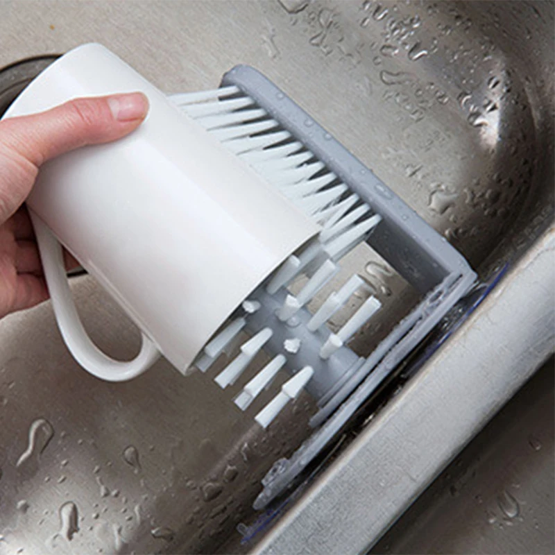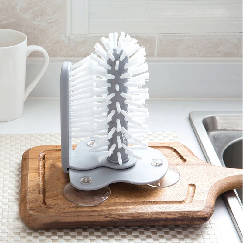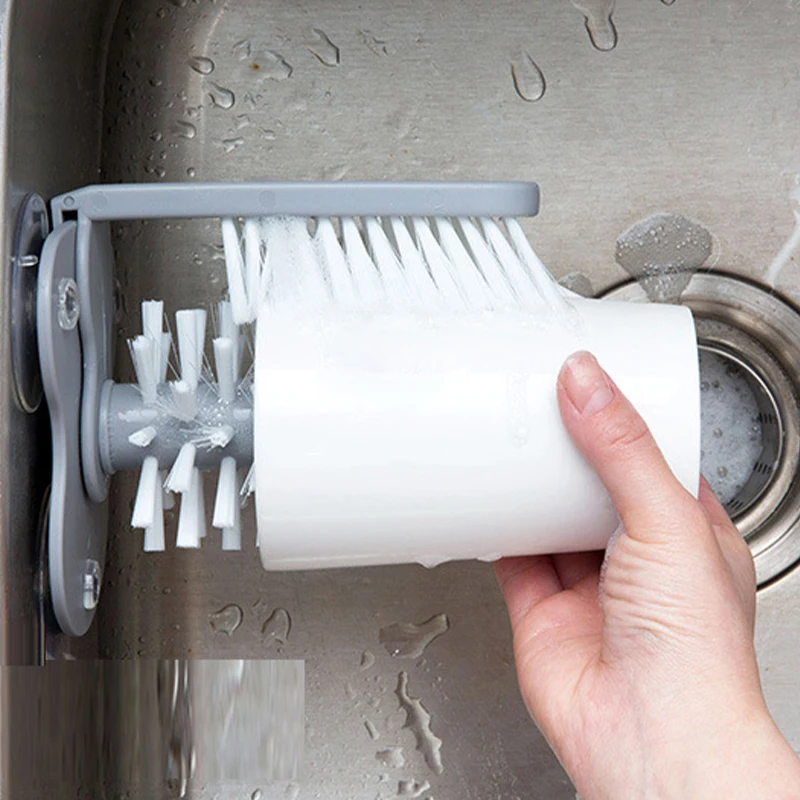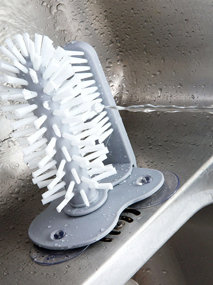 Большая и двойная конструкция щетки для удаления стойких загрязнений, с 3 присосками, можно прикрепить к стенам, столешникам, легко сливать, чистить