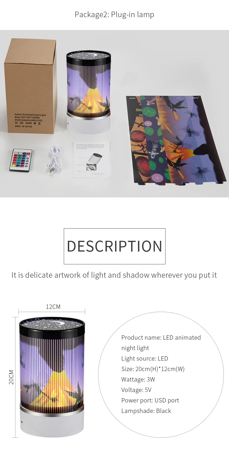 Аксессуары продукта: изделие, руководство, кабель для передачи данных, пульт дистанционного управления, узор эффекта 4 шт.