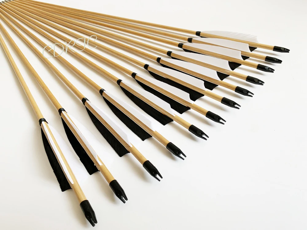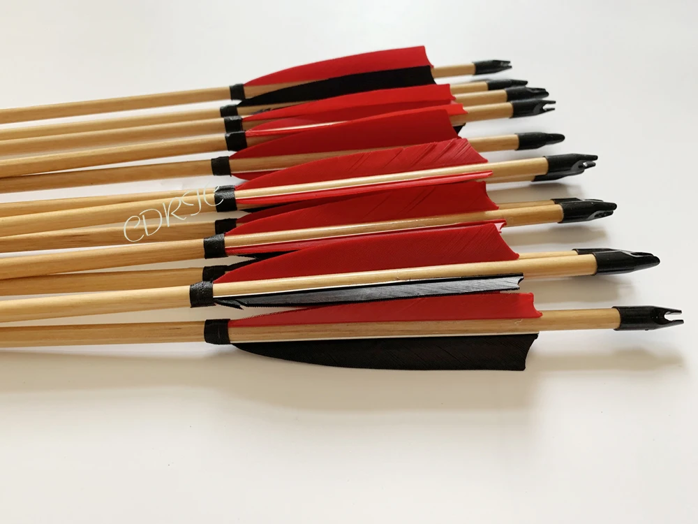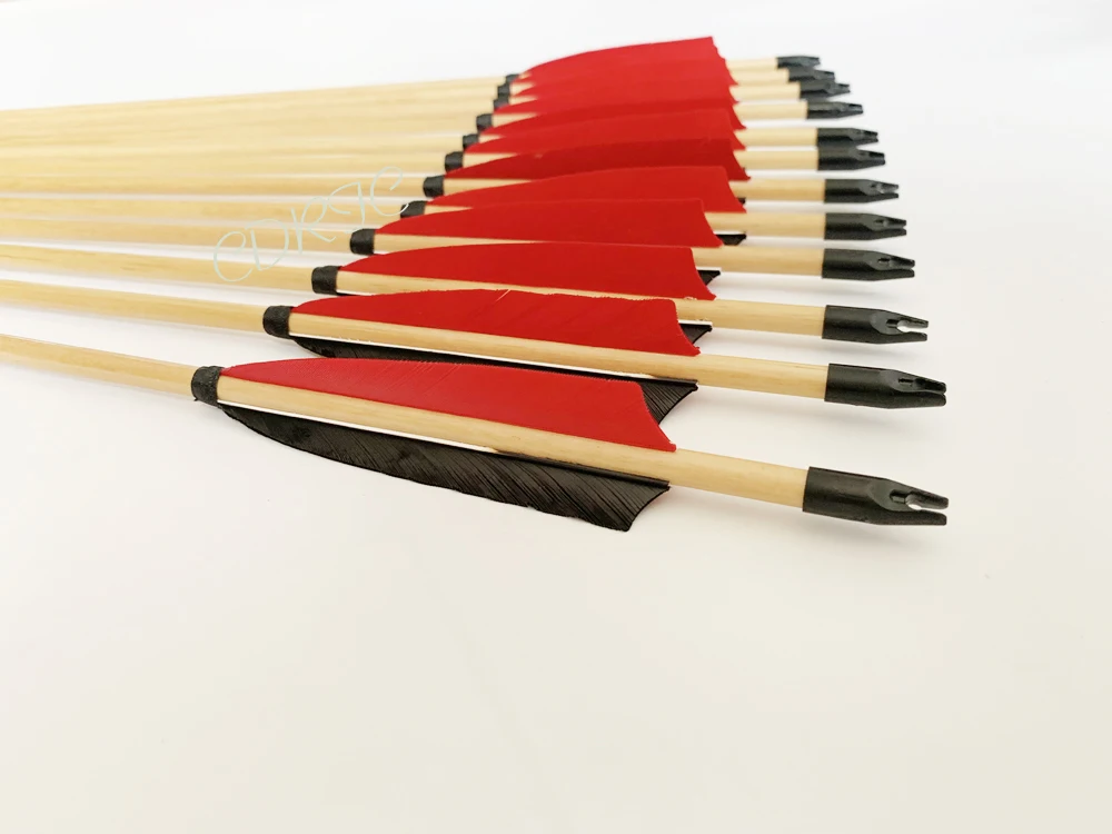 6/12 Шт плетеный абажур из натурального дерева стрелы 32 дюйма с 2 Цвет перо индейки железа в британском стиле стрелы для на открытом воздухе стрельба из лука лук