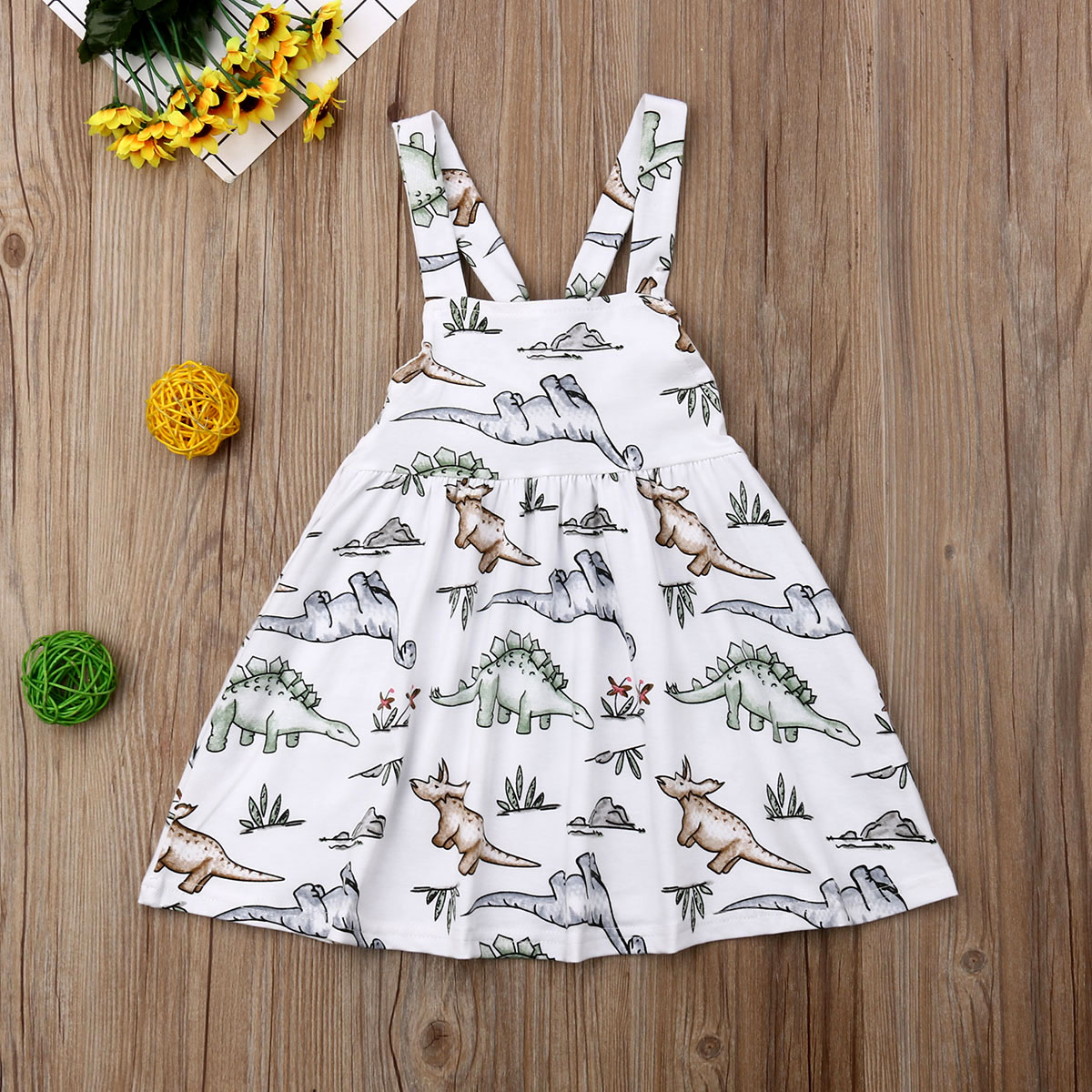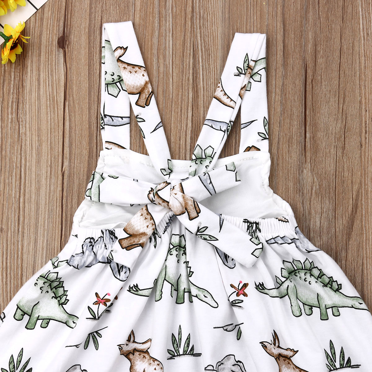 Платье на бретелях для маленьких девочек платья принцессы без рукавов с рисунком динозавра летнее повседневное Открытое платье с открытой спиной От 6 месяцев до 4 лет