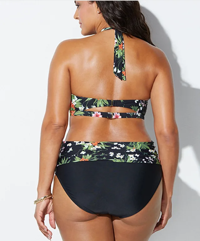 Женский купальник бикини с цветочным принтом, черный купальник с высокой талией, бикини большого размера, бикини для полных женщин, 20, 2019