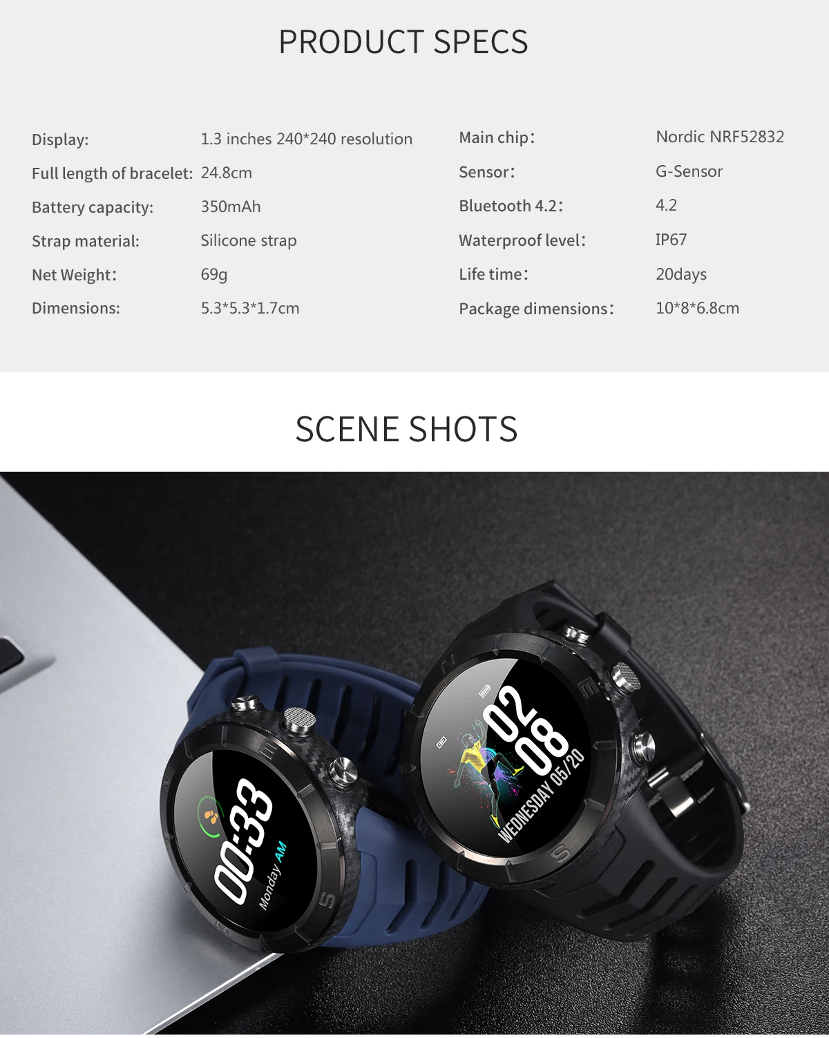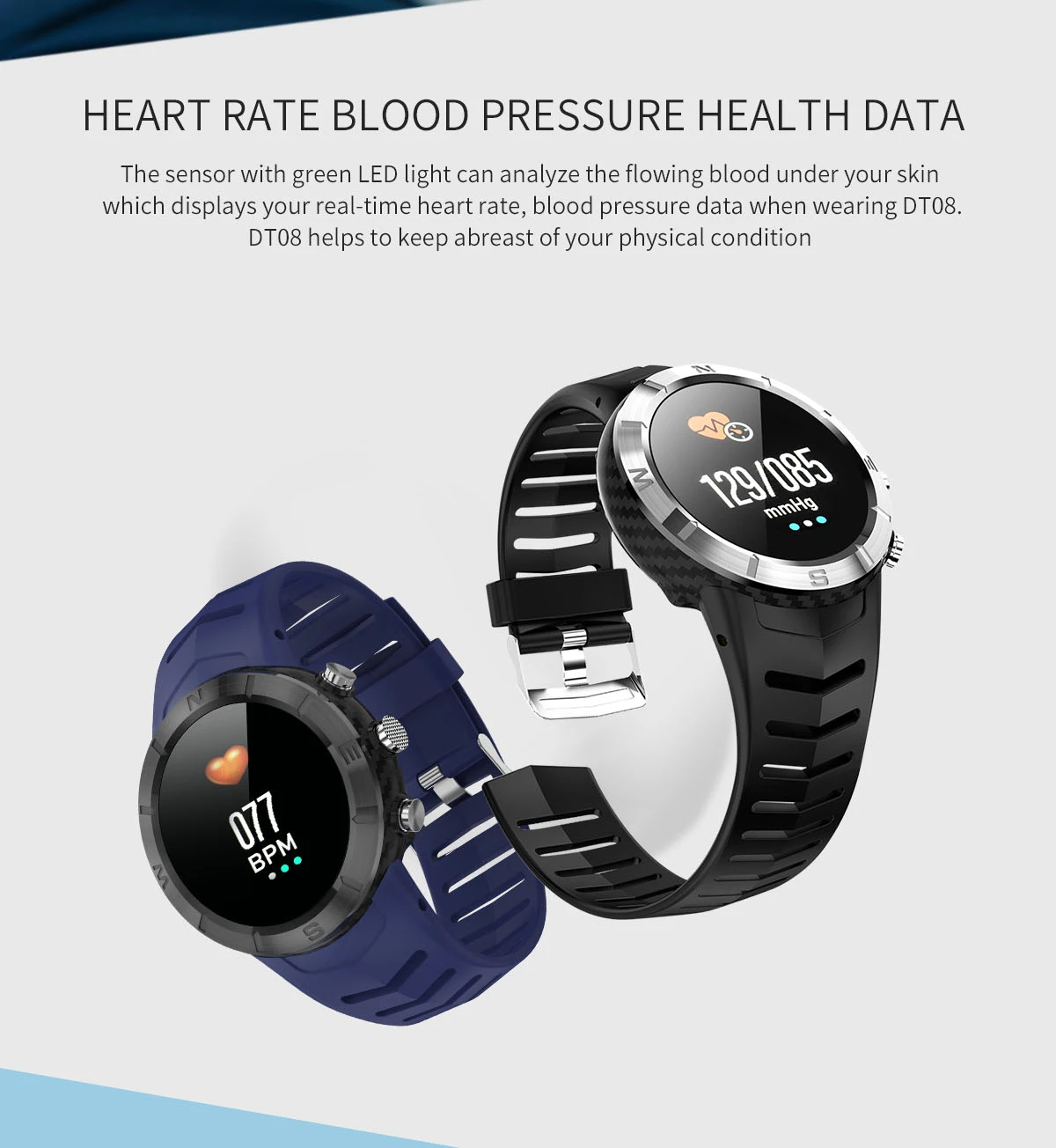 DT08 Смарт-часы для мужчин открытый круглый сенсорный экран 1,3 'спортивные Смарт-часы HRV Обнаружение IP67 водонепроницаемый браслет с монитором сердечного ритма