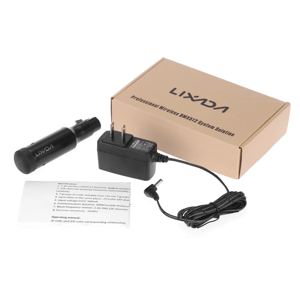 Этот перезаряжаемый приемник используется для сценического светильник. Передает стандартные данные протокола DMX512 (генерируемые консолью). С ним вы можете управлять сценическим светильник беспроводным способом.