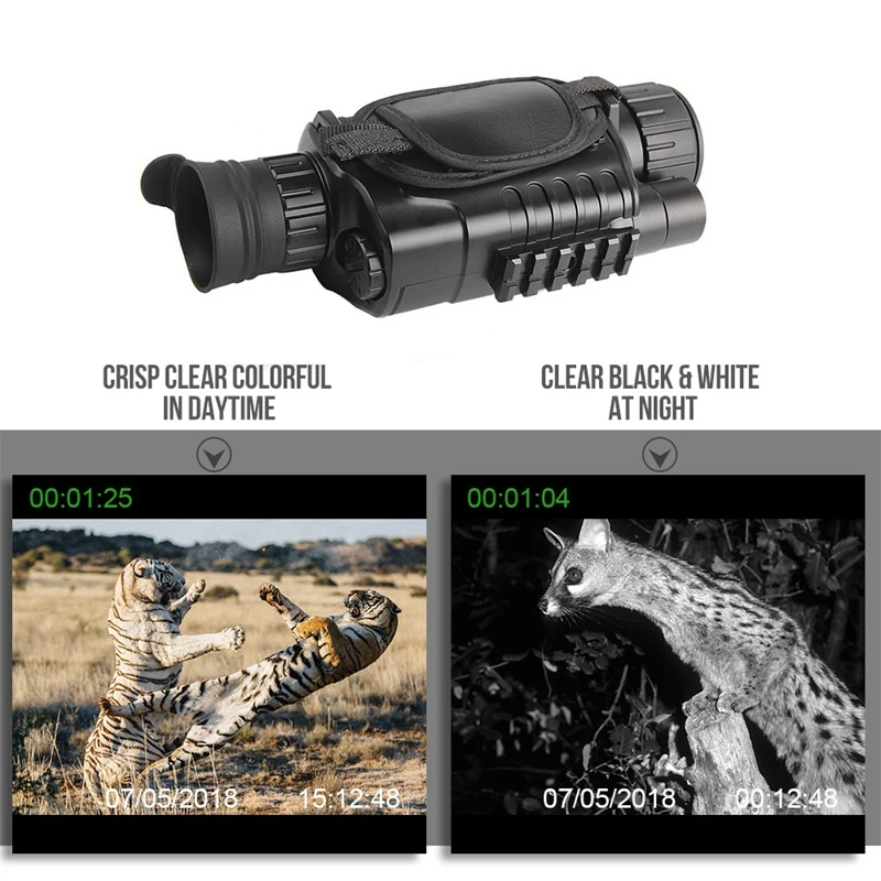 Монокуляр является идеальным оптическим устройством для улучшения вашего зрения в ночное время. Встроенный инфракрасный осветитель обеспечивает дополнительный светильник при темных условиях. Инфракрасная сила может быть скорректирована в соответствии с вашей ситуацией.