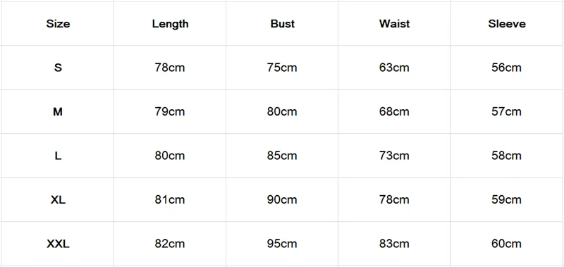 При ручном измерении возможна погрешность в 1-3 см. Примечание: китайские размеры одежды обычно меньше, чем размеры в других странах, пожалуйста, внимательно прочитайте таблицу размеров перед размещением заказа, спасибо.