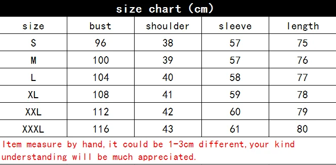 Обратите внимание: Пожалуйста, внимательно выбирайте размер. Вы можете измерить себя, сочетать с информацией измерения (вес, рост/бюст, плечо и рукав) на выбор. или перед размещением заказа, вы можете связаться с нами, чтобы мы могли помочь вам выбрать правильный размер.