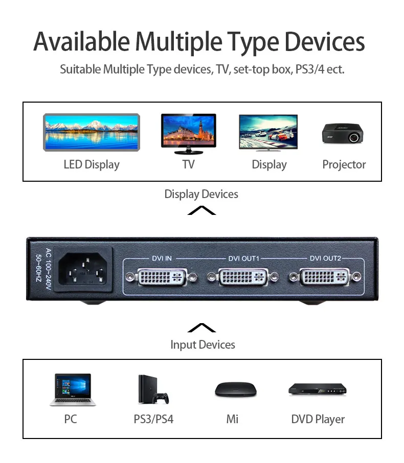 Dvi сплиттер AMS-D1S2 dvi распределитель коммутатор 1 в 2 выход full hd 1080P @ 60 Гц для монитора проектора компьютерная графическая карта