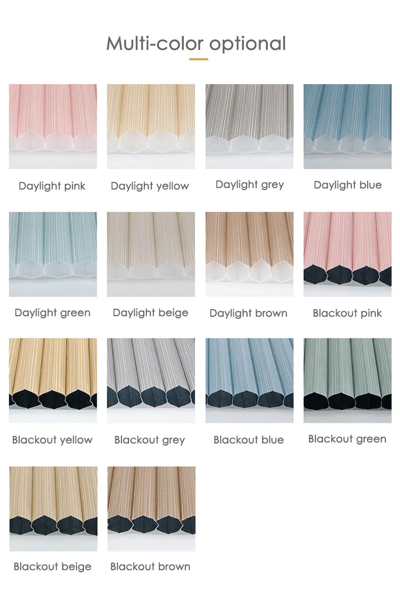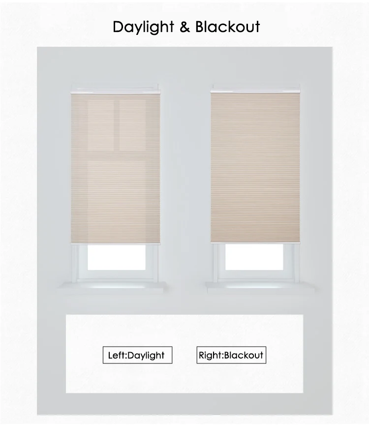 1. Затемненная ткань внутри слоя заполнена алюминиевой фольгой (имеет преимущества герметичности, затенения, износостойкости, шумоподавления и т. Д.). Внутренний воздушный слой шестигранника полностью закрыт, и воздух может быть разряжен только с двух концов. Таким образом, Затемненные соты поднимаются и скорость падения будет медленнее, чем дневные соты.