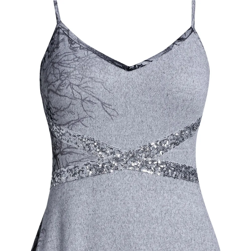 Летние туфли, украшенные пайетками, сексуальное платье без рукавов на бретельках с принтом на тонких бретелях, платье с топом с v-образным вырезом ТРАПЕЦИЕВИДНОЕ элегантное миди вечернее платье вечерние платья