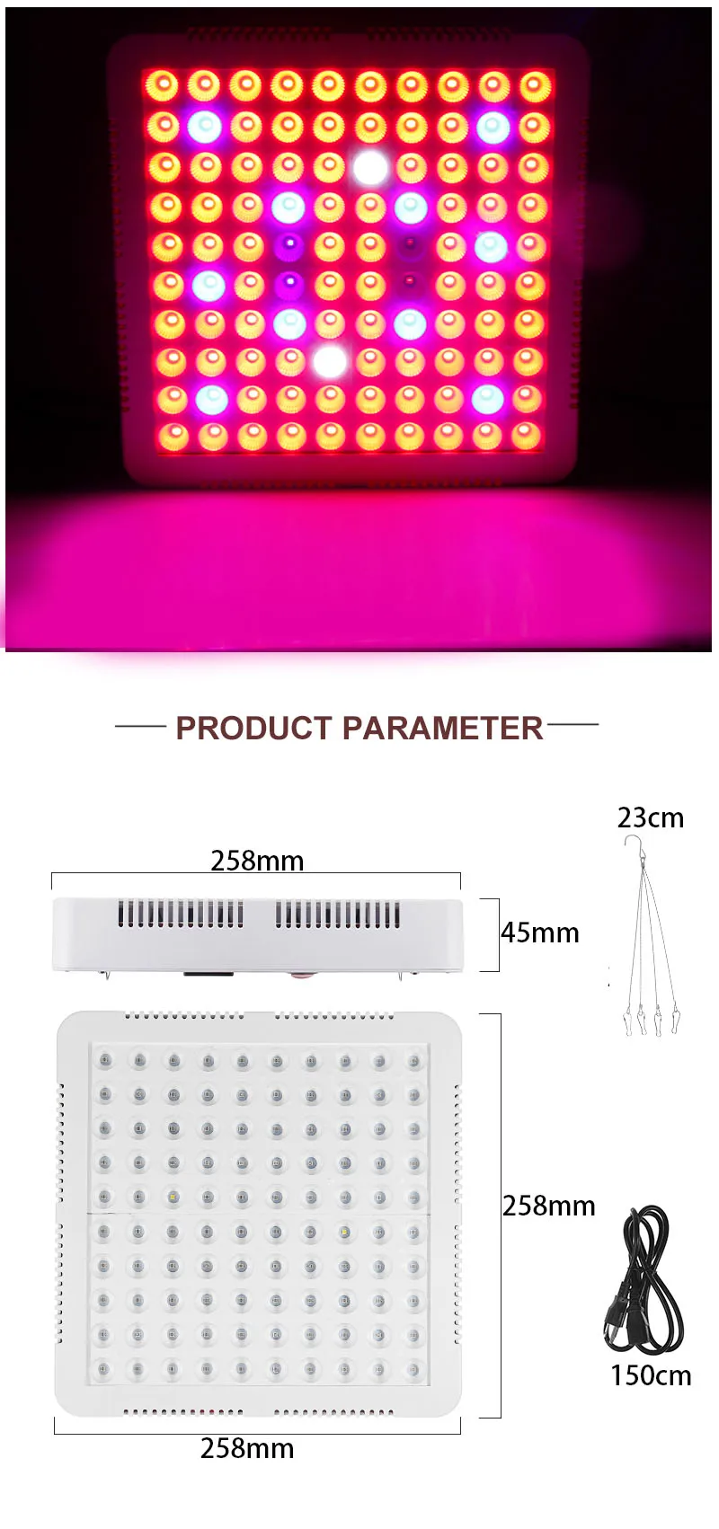 【PROFESSIONAL FULL SPECTRUM】Designed for indoor Plants, Grow Seedling Light is Equipped with 5 Different Wavelengths of Lamp Beads (84 Red+10Blue+2UV+2IR+2White),Provides Perfect Wavelength for all Growing Stage, Perfect for Seeding, Germination, Vegetative & Succulent. 【EASY TO SET UPUpdated Handing Kit make Growth Light much Easier to Assemble. ABS Plastic Material Body, Excellent Heat Control LED Chips helps your Plants Grow Better. 1000W (10W Per Light, Replaced 1000W HPS Light, Actual Power Consumption 120-130W) 【WIDELY USAGE】Plant Light Can be Used for both Hydroponics and indoor Plants in Soil, such as Herbs,Orchid, Pepper, Potatoes, Lettuce, Chili, Tomatoes, Aquarium Plants like Algae that in Greenhouse, Garden, Vertical Farm, Grow Tent or Grow Room. Package: 1*grow light+hanging set+plug