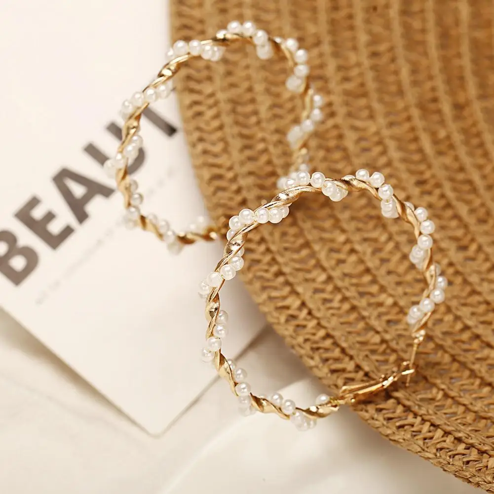 Новый стиль Мода Ретро стиль большие круглые серьги женские жемчужные большие круглые простые ретро уличные серьги