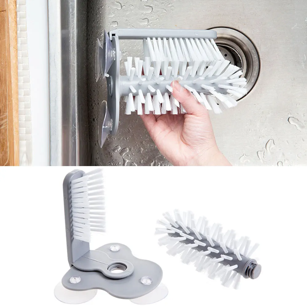 100% новое высокое качество Материал: ПП + ПВХ Цвет: серый Размер: около 17,5*14 см Особенности: Дно снабжено присоской, которая может быть прочно прикреплена к поверхности стены, и столешница находится на раковине. Двойная Кисть для макияжа дизайн головы, 360 градусов без мертвой очистки угла Твердость щетинок умеренная и не повреждает предметы. Съемный для легкой чисткиПродукты включают в себя: