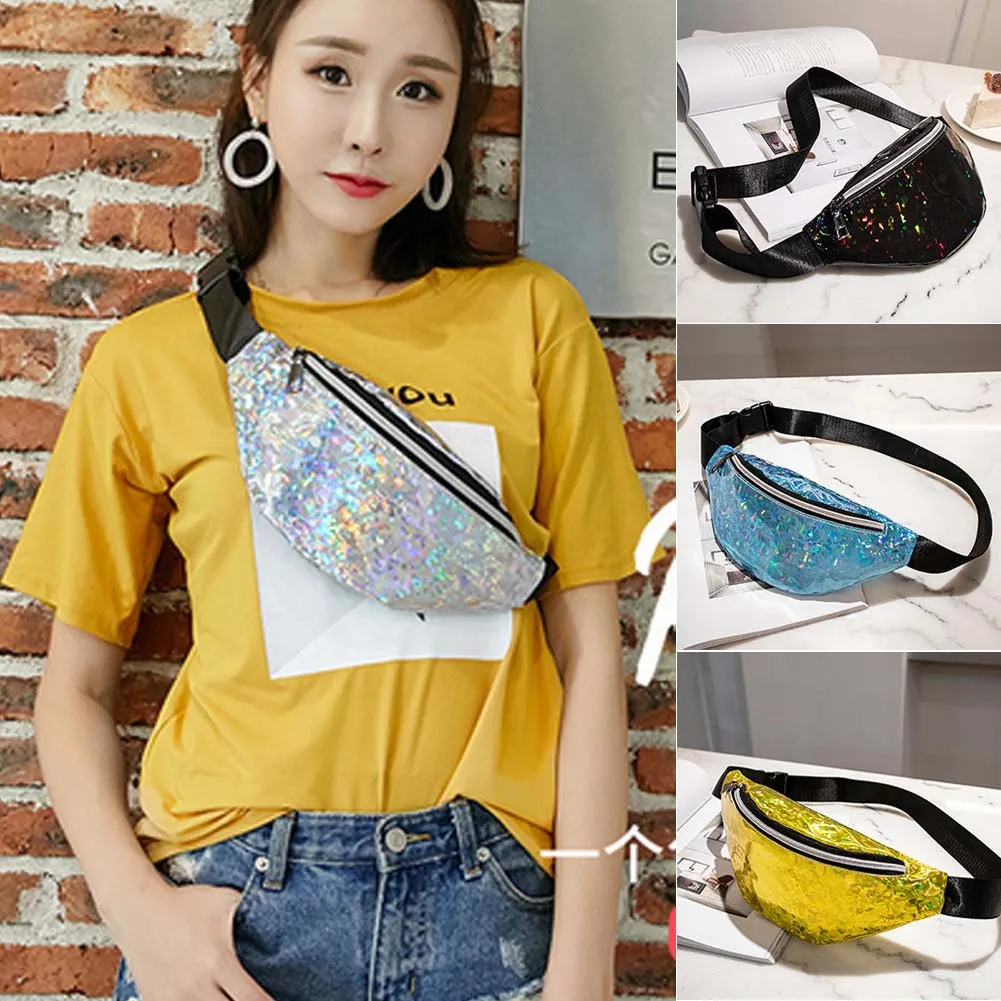 Женская и Мужская поясная сумка, Прозрачный блестящий пояс, поясная сумка, сумка на бедрах, сумка для путешествий