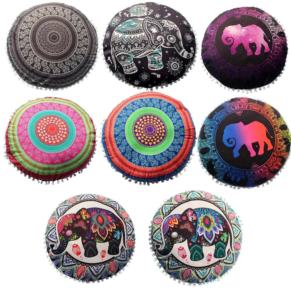 Богемный круглый чехол для подушки Мандала слон круглый чехол для подушки Чехол для гостиной украшение для пола