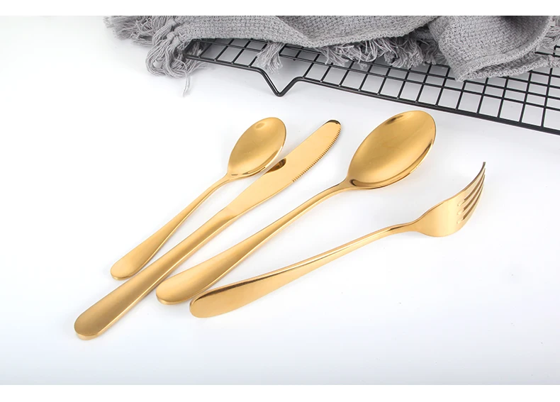 Материал: Нержавеющая сталь Повод: дом, отель, Ресторан... Набор: нож, столовая вилка, столовая ложка, чайная ложка Размеры: Столовая ложка: 21,5 см * 4 см, 67 г Столовая вилка: 21 см * 4 см, 43 г Чайная ложка: 15,6 см * 3 см, 32 г Ножи: 22,8 см * 6 см, 70 г