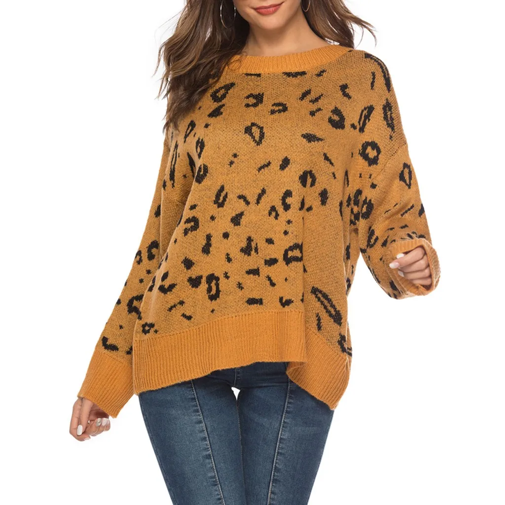 Женский кардиган с леопардовым принтом, длинный рукав, вязаный свитер, блузка, топы