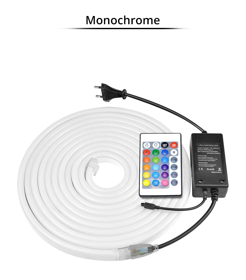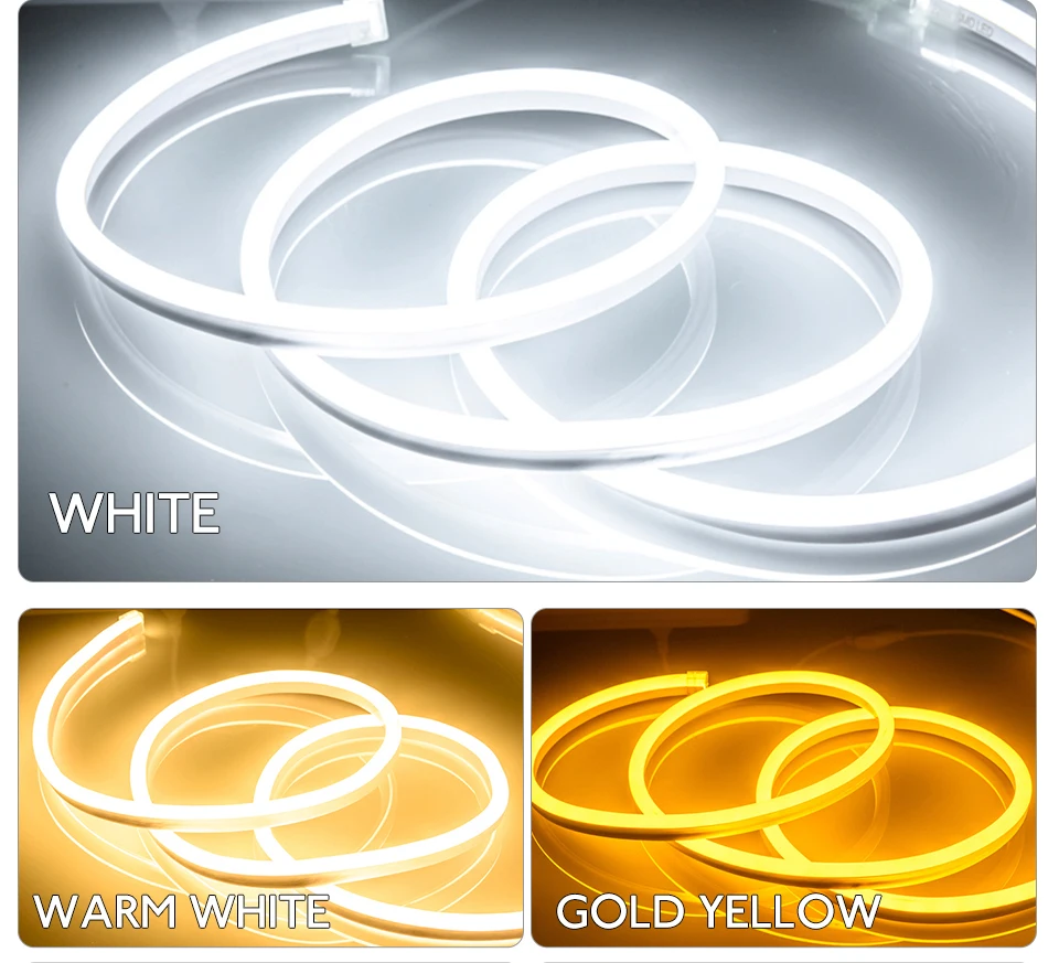 Спецификация: Тип: мягкие гибсветодиодный светодиодные неоновые гирлянды Входное напряжение: AC220V-240V Тип штепсельной вилки: штепсельная вилка европейского стандарта США Тип светодиодный: SMD2835 (один тип, 120 светодиодов с/м) Цвет светильник: теплый белый/красный/зеленый/синий/розовый/золотисто-желтый/RGB Угол свечения: 180 градусов Длина полосы: 1 м-12 м Мощность: 7 Вт/м Водонепроницаемость: водонепроницаемость IP65 Режущий блок: 1 м Угол свечения: 180 градусов Длительный срок службы:> 50000 часов Особенность: Низкое энергопотребление, супер-яркий, но работает при низкой температуре Светильник свет рассеивается и полностью гладкий, светящийся очень ровный Светодиодный Дов: высококачественный светодиод 2835 SMD, высокая интенсивность и надежность Высокое качество, водонепроницаемость, термостойкость и антифриз. Материал ПВХ, хорошо пропускает светильник Медный провод, высокая яркость, хорошая проводимость, безопасность и стабильность