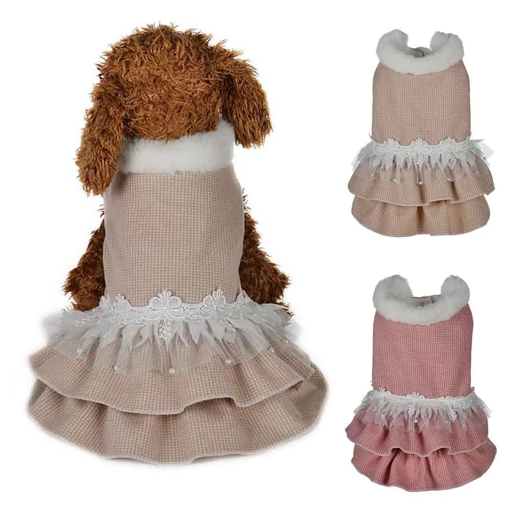 New Pet Fashion Print Lace Skirt Autumn And Winter Comfort Cat Dog Clothing