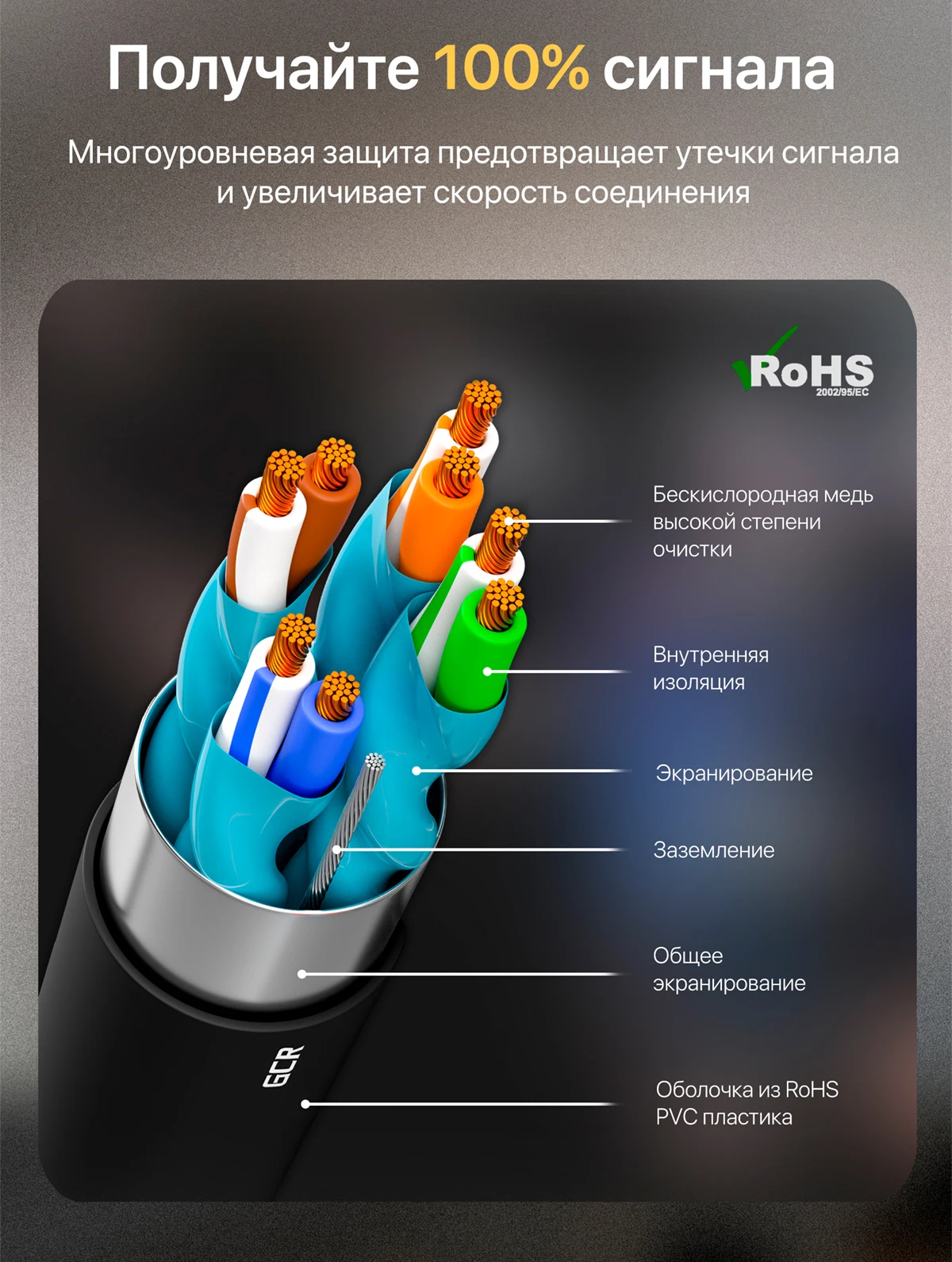 GCR Скоростной PROF патч корд кат 7 для интернета smart tv роутера cat 7 RJ45 fast Ethernet LAN кабель short patch cord long