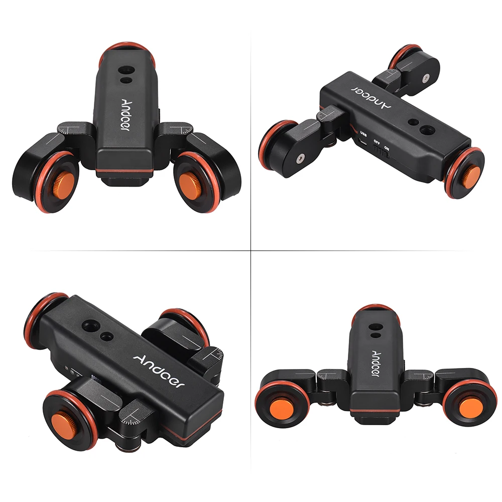 Модернизированный механизированная камера Долли со шкалой индикации, 3 скоростями (2,4 см/2,6 см/2,8 см/с); Поддержка двигаться в противоположном направлении; Колеса угол 180 ° регулируемый, вы можете достичь креативного круглого маршрута/прямого движения. Идеальная автоматическая тележка для замедленной съемки, макросъемки, съемки под низким углом.