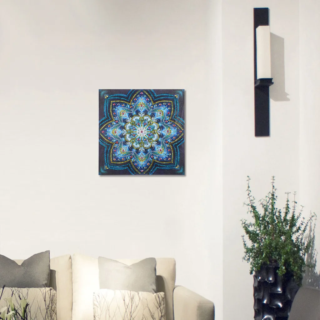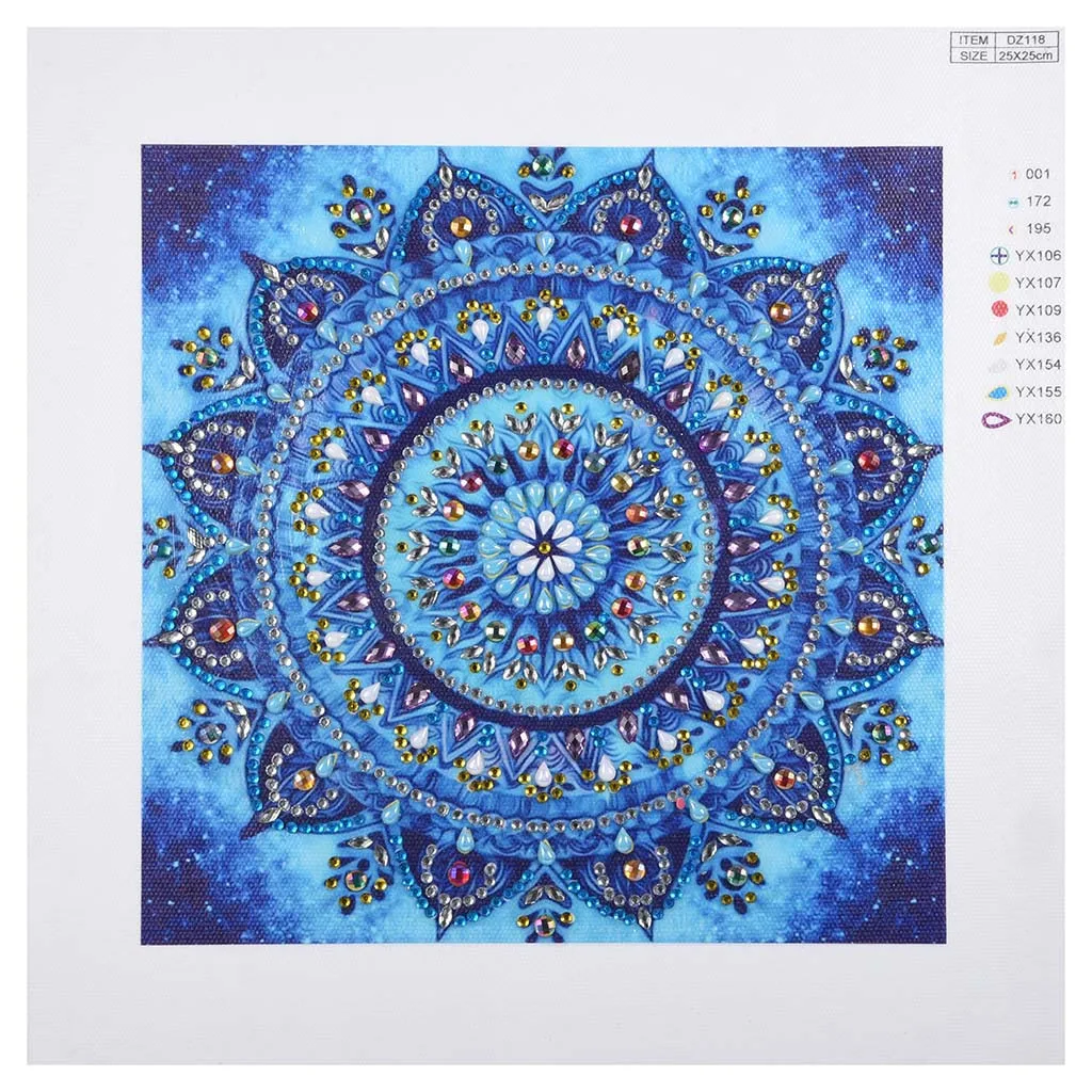 Набор для алмазной живописи: окрашены холстом, цветные стразы, пластиковые пластины, глина, небольшой пластиковый пакет и коробка для хранения аксессуаров.