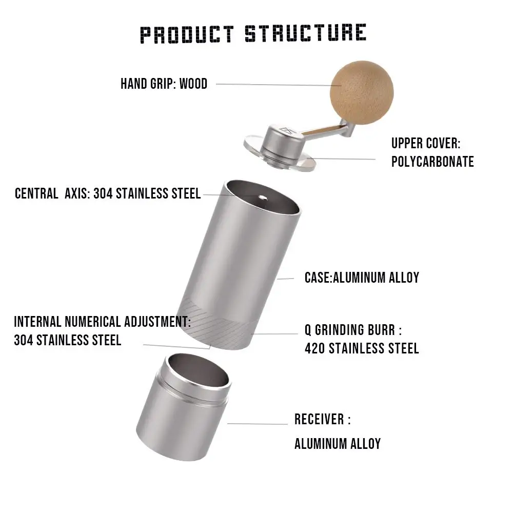 Мини и портативный: 1 ручная кофемолка Zpresso Q, оснащенная приемником из алюминиевого сплава, стоит всего 138 мм с диаметром 46 мм и весит 440 г для создания удобного захвата и легкого измельчения. Эта кофемолка 1Zpresso Q имеет правильный размер и вес, чтобы упаковать ее в сумку. Возьмите его с собой в следующую путешествие или на любое мероприятие на свежем воздухе и наслаждайтесь и делитесь радостью приготовления кофе с вашим другом. Отличное время кофе в любое время и в любом месте. Без проводов, без батареек: без помощи электричества Вы сможете легко Измельчить любимые кофейные зерна и наслаждаться счастье заваривания кофе в любом месте. Подходит для вас, чтобы наслаждаться кофе в офисе или дома, или даже взять его с собой в следующий кемпинг, туризм, путешествия. Это должна быть кофемолка, чтобы удовлетворить ваши потребности свежего кофе везде. Гибкая регулировка: с внутренней числовой регулировкой, вы можете гибко регулировать уровень тонкости и грубости вашего кофейного порошка. Кроме того, крышка Кофемолки прозрачная, поэтому вы можете увидеть количество и внешний вид кофейных зерен во время помола. Быстросъемная структура: В отличие от электрической кофемолки, эта Мини-ручная кофемолка легко разбирается для тщательной очистки. Удаляя корпус кофемолки, внутренние компоненты, такие как подшипник, можно тщательно очистить воздуходувкой от пыли и щеткой. Руководство по качеству Кофе перцемолкой? Все 1ZPresso изделиях используются безопасные материалы, чтобы убедиться в том, что это безопасно использовать для готовки еды. 1ZPresso Q ручной Кофе перцемолка сделана из алюминиевого сплава, а также оснащен из нержавеющей стали конической заусенцев, в то время как порошкоприемник изготовлен из алюминиевого сплава, в результате чего легче носить опыт работы с долговечностью. Если вы хотите быстрее Измельчить кофейные зерна, эта кофемолка может мгновенно стать электрической мясорубкой с помощью 5,5 мм электрической сверлильной втулки