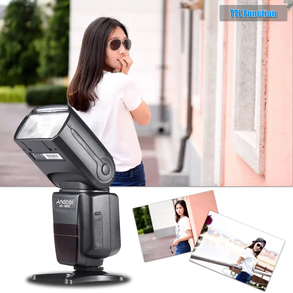С большим количеством направляющих GN58, Andoer AD-980II действительно хорошо работает. Ведущая высокоскоростная вспышка sync составляет до 1/8000s, достаточно, чтобы захватить удивительный момент. Предназначен для цифровых зеркальных камер Canon, также может использоваться в качестве главного или подчиненного устройства.