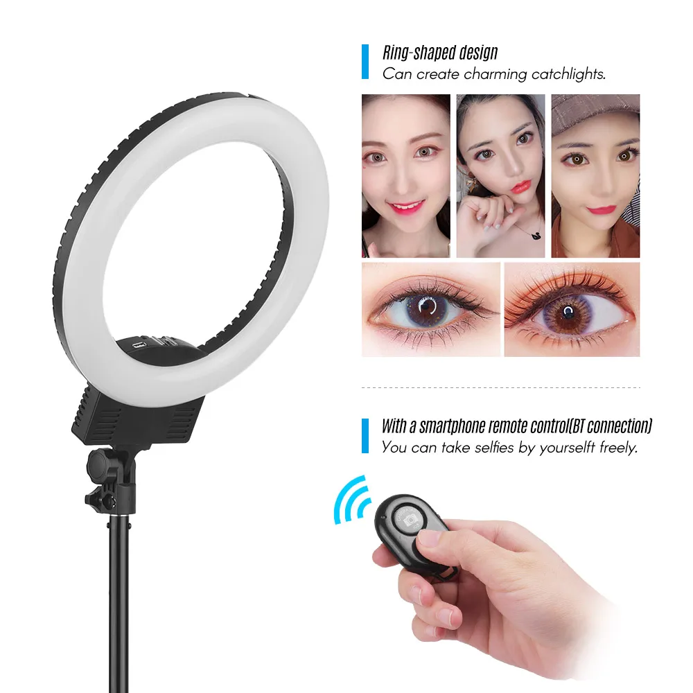【Портативный светодиодный кольцевой светильник 】12-дюймовый компактный размер, изготовлен из высококачественного АБС-пластика + поликарбоната, легкий и портативный, подходит для сетевого вещания, портретной съемки, макияжа лица и т. д.