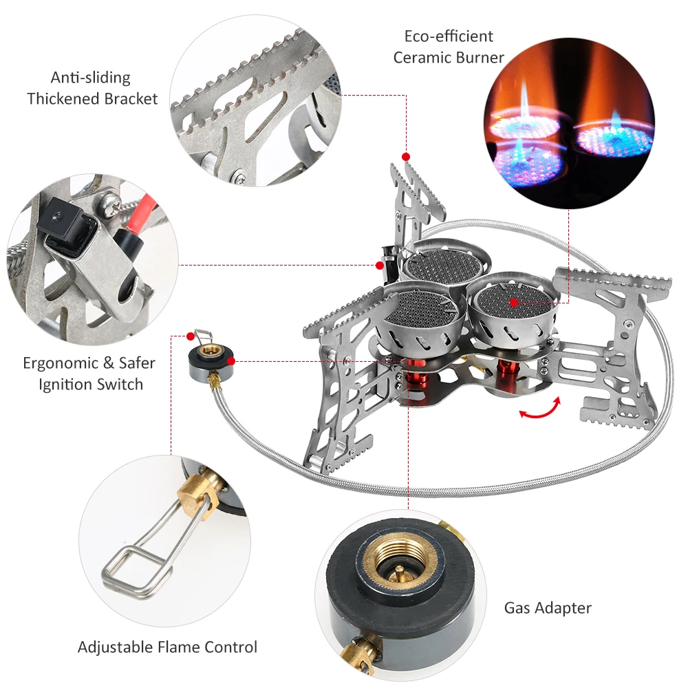 Походная плита с газовым адаптер картриджа подходит для кемпинга, пеших прогулок, рыбалки, альпинизма и дорожной поездки и т. Д.