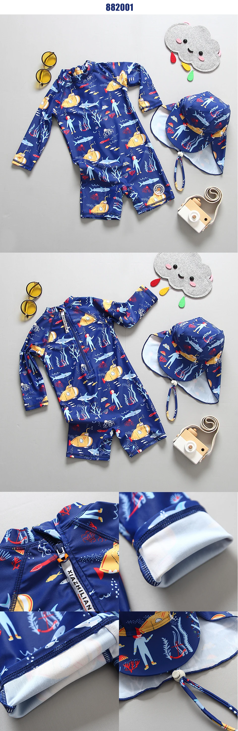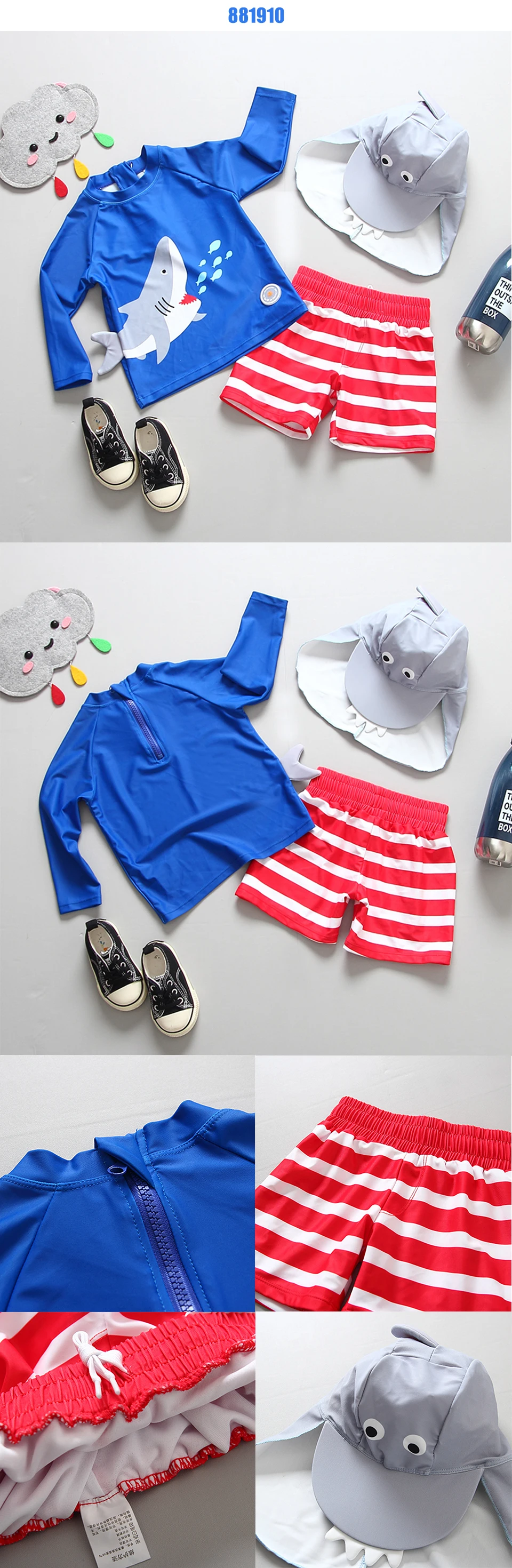 Детский купальный костюм для малышей, детский купальный костюм с длинными рукавами и защитой от ультрафиолета для мальчиков, купальный костюм для бассейна, комплект из 3 предметов