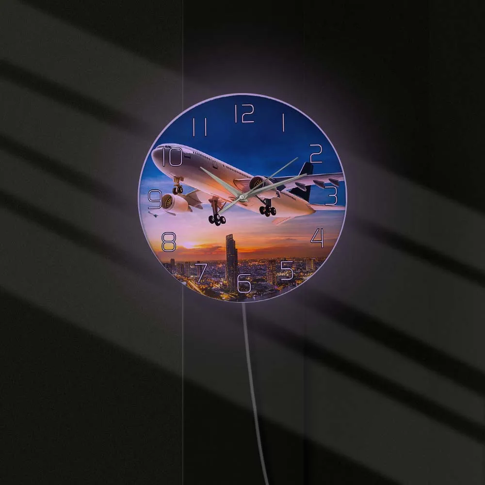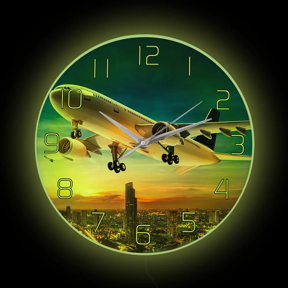 Взлет закат самолет настенные часы