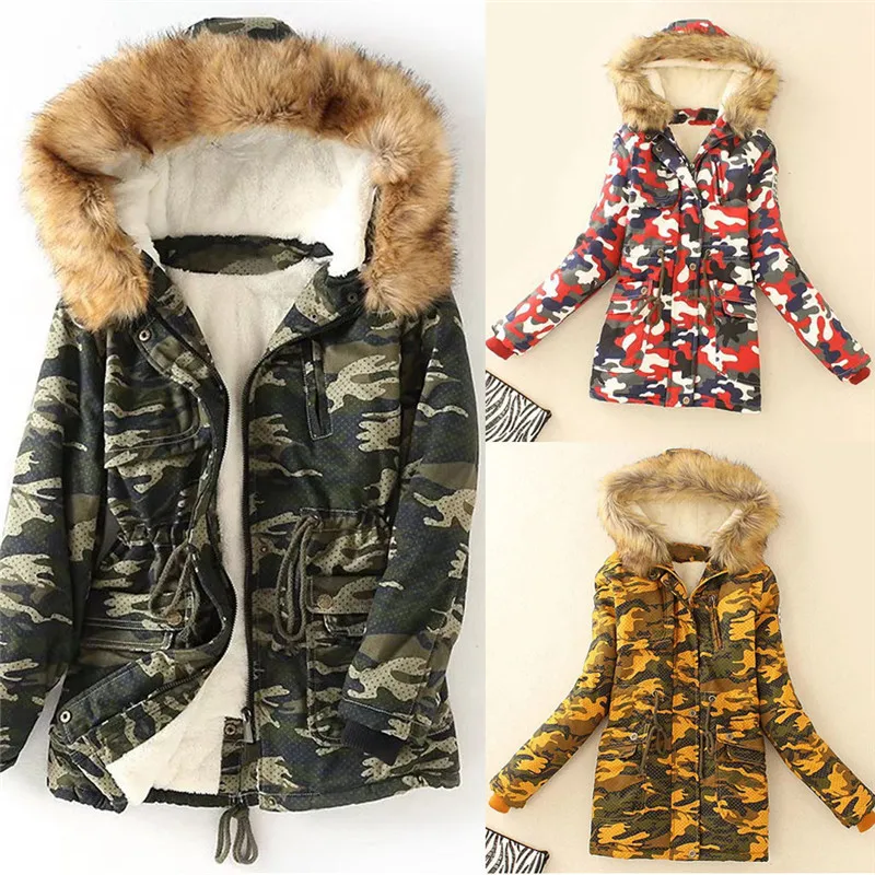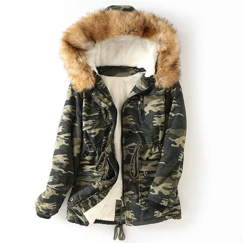 Женская зимняя мода камуфляжное утолщенное пальто на молнии
