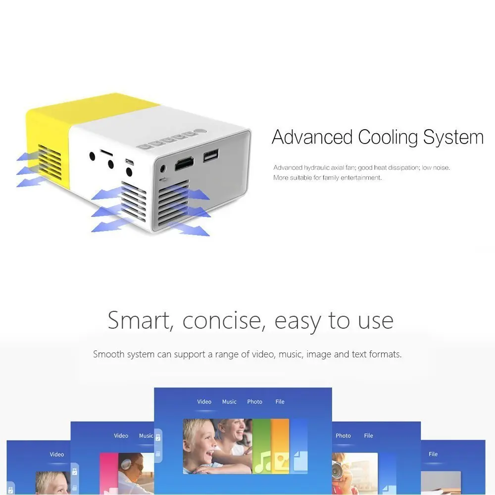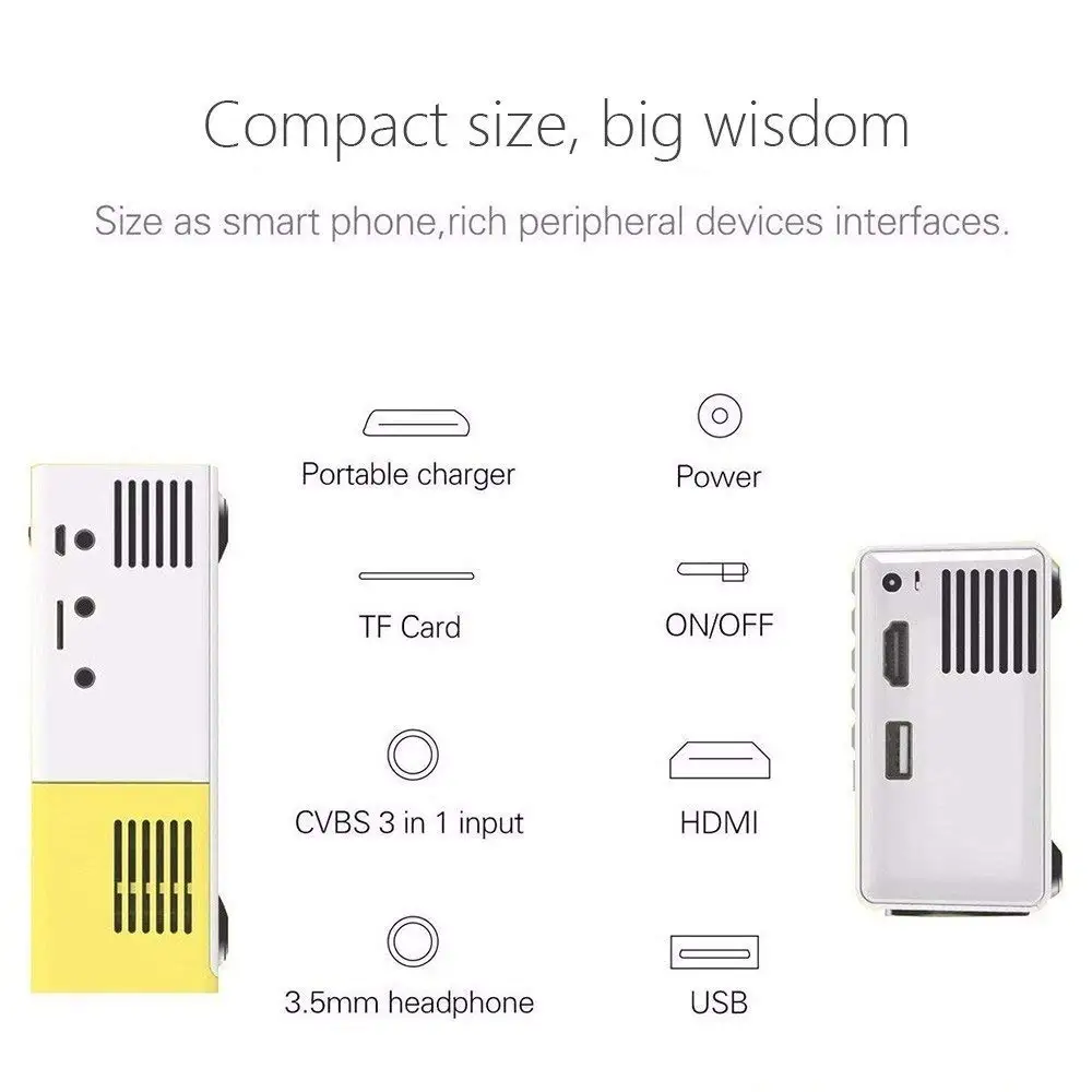 Вы хотите иметь мобильный театр? Традиционный проектор неудобен для вас из-за большого размера. Поэтому мы доставляем вам этот высококачественный портативный проектор. Используйте YG - 300 ЖК-проектор везде, на встрече, в кемпинге или дома, возможности бесконечны. Благодаря широкому спектру возможностей подключения, его портативности и сильному сроку службы батареи убедитесь, что независимо от того, что вам нужно, это всегда для вас. Держите его в руке, Смотрите любимые видео на ходу.