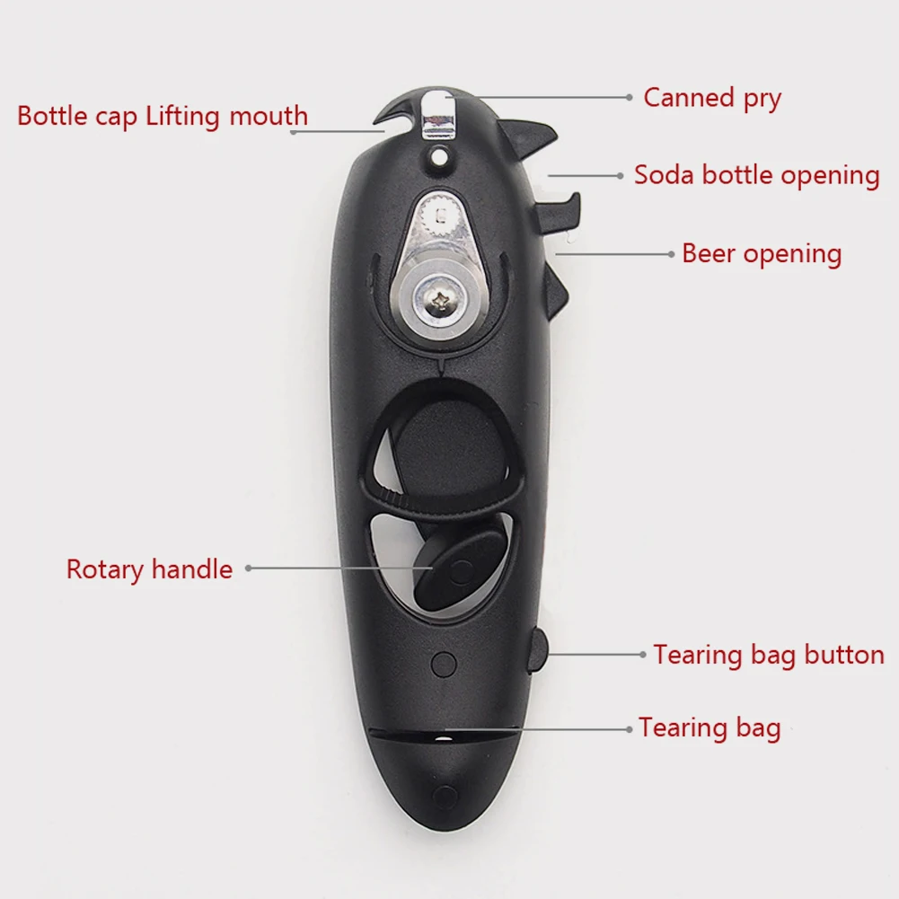 Название: 6-в-1 многофункциональный консервный нож Безопасность консервный нож Материал: АБС + высокоуглеродистая Нержавеющая сталь (головка ножа) Технические характеристики: Длина 18,6 * Ширина 6,5 * высота 5,6 см Объем продукта 19,2 см * 6,0 см * 5,6 см Цвет: черный Вес нетто: 116 г