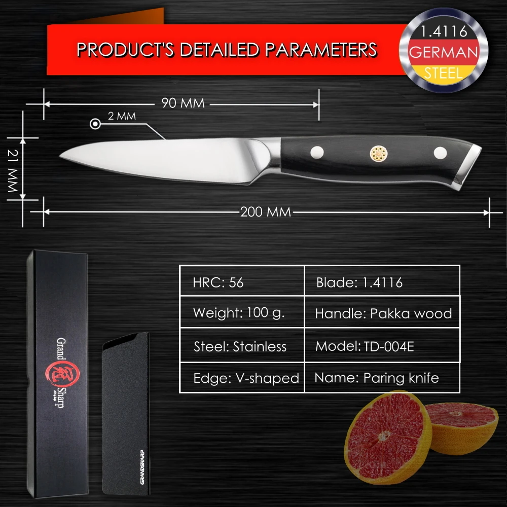 Шеф-повар, нарезка, Кливер, хлеб, СКРЕПЛЕНИЕ, сантоку и нож шеф-повара.Немецкая 1,4116 высокоуглеродистая Нержавеющая стальЧерная ручка pakkawoodПараметры продукта